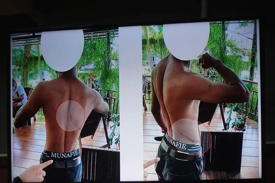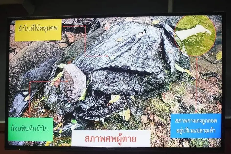 โดยในการแถลงข่าว ผู้ต้องหาได้โฟนอินเพื่อขอโทษคนไทยและให้การกับสิ่งที่เกิดขึ้น ในวันที่เกิดเหตุ ว่า หลังจากที่ตนได้ขึ้นไปหาของป่าและเดินกลับลงมาจากบริเวณชั้นบนของน้ำตกโตนอ่าวยน ก็พบกับผู้ตายนั่งเปลือยกายท่อนล่าง อยู่บริเวณโขดหินริมธารน้ำตก และได้แอบดูอยู่ครู่หนึ่ง ก่อนที่จะตัดสินใจเดินเข้าไปหาผู้ตาย แล้วได้ใช้มือทั้งสองข้างล็อคคอผู้ตายจากทางด้านหลัง ผู้ตายได้ดิ้นรนต่อสู้ จนตกลงไปในแอ่งน้ำด้วยกัน และตนได้ใช้มือรัดคอซ้ำ จนผู้ตายแน่นิ่งไป จากนั้นได้จับผู้ตายคว่ำหน้า และใช้พลาสติกสีเข้ม ที่อยู่ในบริเวณนั้น มาคลุมปิดศพไว้ และใช้ก้อนหินทับไว้อีกชั้นหนึ่ง เพื่อไมให้ผู้ใดพบเห็น แล้วนำกระเป๋าเป้ของผู้ตายไปช่อนไว้ที่บริเวณหลังต้นไม้ ส่วนรองเท้าของผู้เสียชีวิตได้โยนทิ้งห่างจากศพผู้ตายออกไป จากนั้นได้หลบหนีออกจากที่เกิดเหตุ
