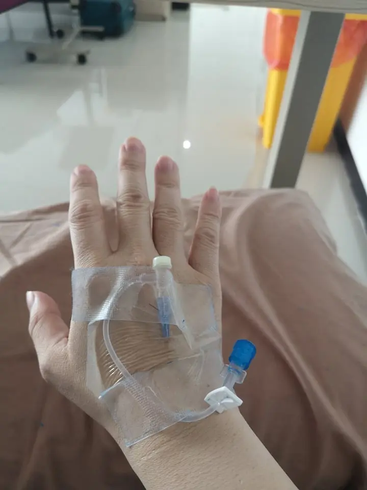 3. วันที่ 2 ใน Hospitel จู่ๆเราก็เดินไปเอ็กซ์เรย์ปอดไม่ไหว ขึ้นลิฟท์ไม่ไหว มีอาการหอบ หายใจไม่ออก เหมือนจะจมน้ำ ทั้งๆที่เมื่อวานยังดีๆอยู่เลย หมอรีบวิ่งมาที่ห้อง ย้ายเราไปห้องที่มีท่อต่อ ออกซิเจน และนับจากวันนั้น “ถ้าถอดออกซิเจนออก คือเราตายทันที” เพราะหายใจไม่ได้ นอนพะงาบๆ