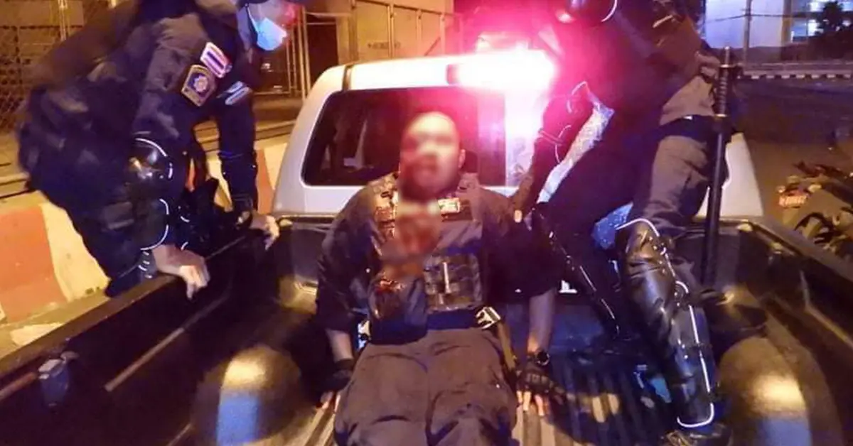 ตำรวจ คฝ. โดนประทัดปาใส่หน้า อาการสาหัส หลังเข้าควบคุมเหตุผู้ชุมนุม บริเวณแยกดินแดง