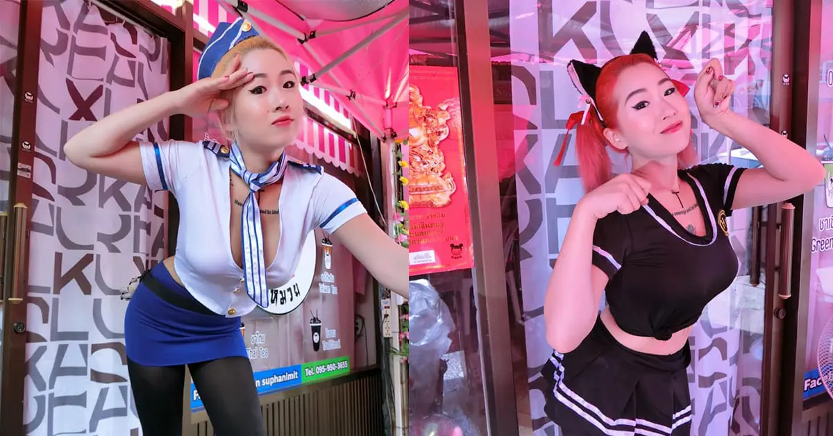 ยอมรับว่าในตอนแรกรู้สึกเขิน ลูกค้าก็ไม่คุ้นตา บางก็ถึงขั้นหันกลับมาดู แต่พอทำไปสักสองอาทิตย์ กลายเป็นที่รู้จักและเพิ่มยอดขายต่อวันได้มาก มีทั้งลูกค้าชายและหญิงเข้ามาอุดหนุนและขอถ่ายรูปลงโซเซียล ในวันธรรมดาเธอจะแต่งชุดเซ็กซี่หรือชุดทำงาน ส่วนวันเสาร์-อาทิตย์แต่งชุดคอสเพลย์ ที่ตั้งแต่เวลา 09.00 – 20.00 น