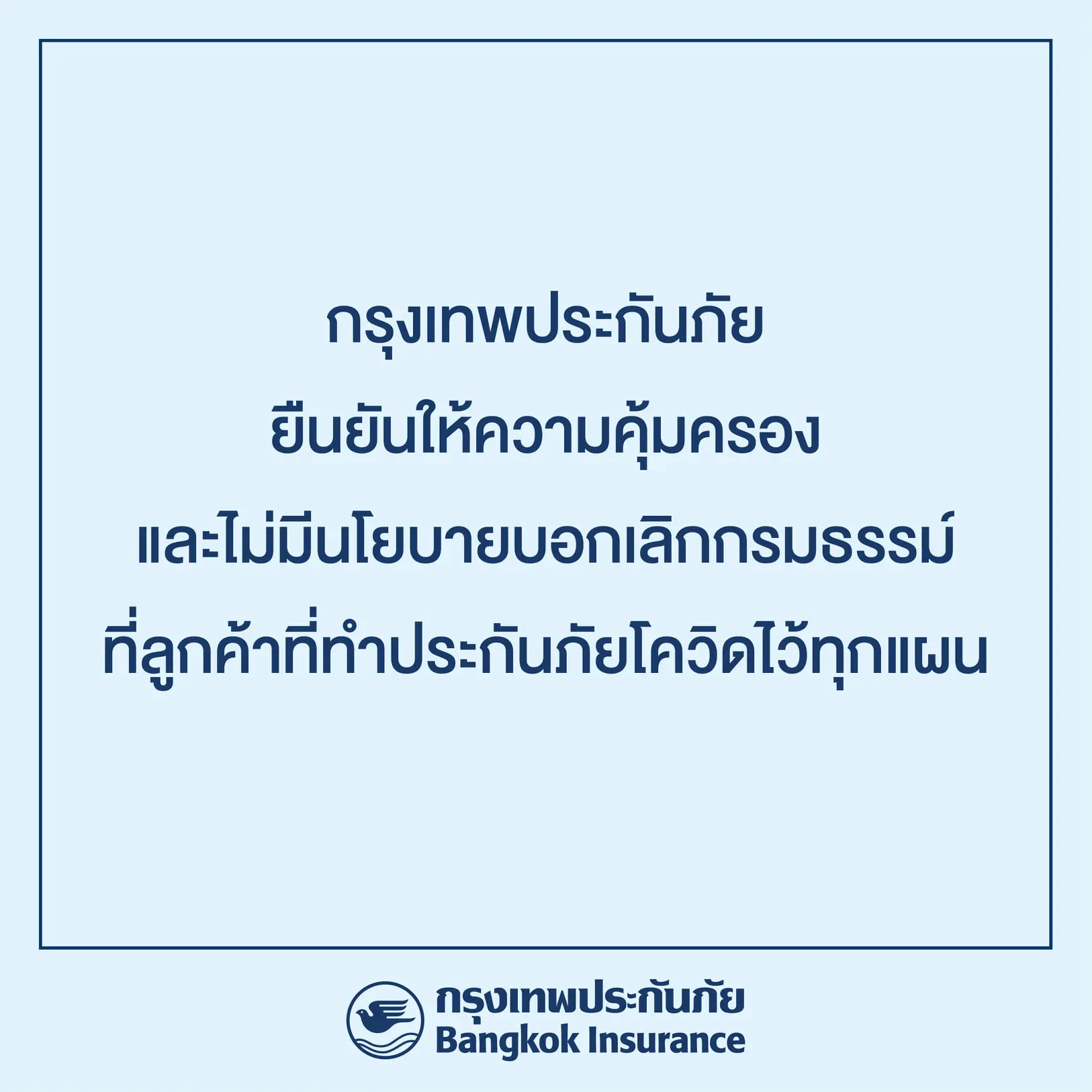 ยืนยันให้ความคุ้มครองและไม่มีนโยบายบอกเลิกกรมธรรม์ประกันโควิดทุกประเภท