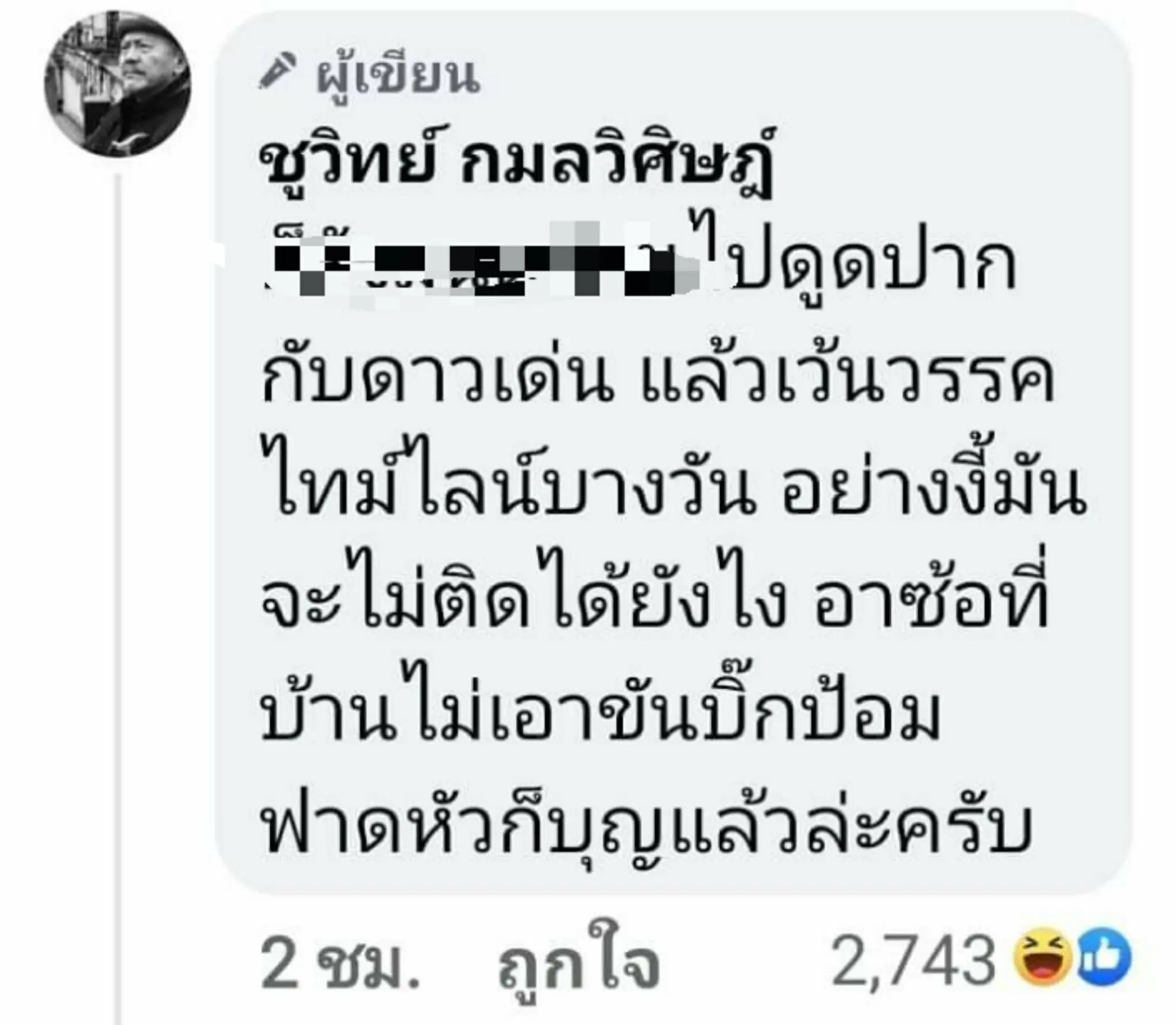 โควิดทองหล่อ มาจาก นักการเมือง – นายชูวิทย์ กมลวิศิษฎ์ อดีตส.ส.พรรครักประเทศไทย โพสต์ข้อความ ถึงกรณี การแพร่กระจายในผับ แถวทองหล่อ “คริสตัลคลับ” รัฐมนตรี นักการเมือง ดารานักร้อง คนดัง โดยมีใจความระบุว่า