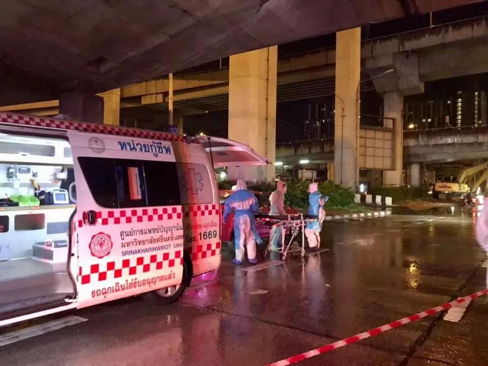 ที่เกิดเหตุพบรถแท็กซี่โตโยต้า สีชมพู ทะเบียน ทฬ 9557 กรุงเทพมหานคร จอดชิดขอบทางด้านซ้าย ท้ายรถติดข้อความว่า “งดรับผู้โดยสาร” ทราบชื่อคนขับคือ นายธนโชติ อายุ 52 ปี ที่พักอยู่ย่านคลองสามวา กทม. เจ้าหน้าที่ได้ขอโทรศัพท์มือถือของเจ้าตัวมาโทรติดต่อประสานญาติเจ้าหน้าที่ได้ตรวจสอบโทรศัพท์มือถือเพื่อจะติดต่อประสานญาติ จึงเห็นข้อความไลน์แจ้งมาจากทาง โรงพยาบาลเวิลด์เมดิคอล แจ้งวัฒนะปากเกร็ด 19 ว่าผลการตรวจพบว่าติดเชื้อโควิด-19