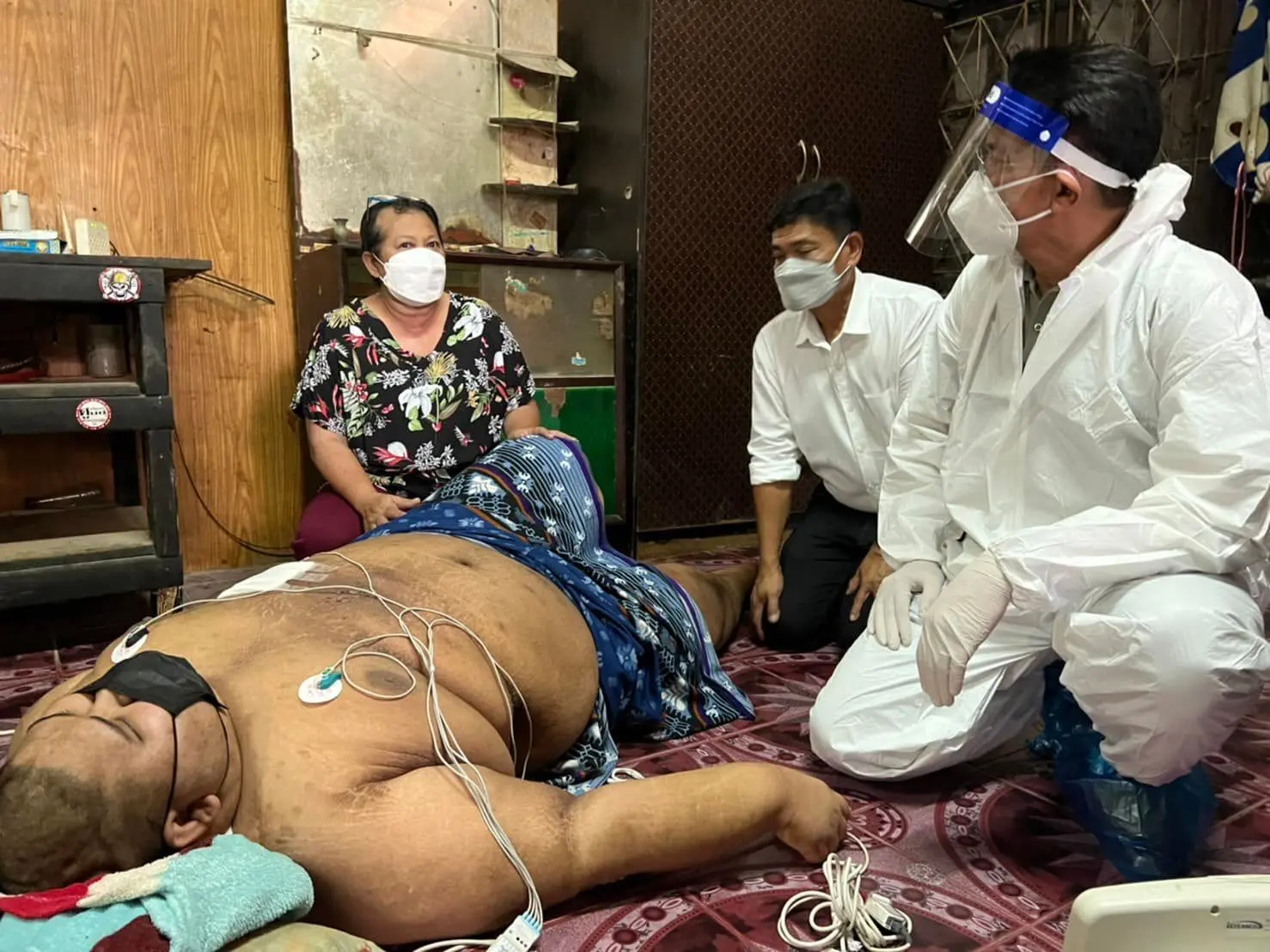 วานนี้ 13 ก.ค. 65 เฟซบุ๊ก สาธิต ปิตุเตชะ รัฐมนตรีว่าการกระทรวงสาธารณสุข ได้นำเจ้าหน้าที่จากสำนักงานสาธารณสุขจังหวัดระยองและเจ้าหน้าที่ในพื้นที่จังหวัดระยองลงพื้นที่ เพื่อเข้าช่วยเหลือ ผู้ป่วยชายรายหนึ่งน้ำหนักที่มีตัวกว่า 300 กิโลกรัม อายุ 23 ปี อาศัยอยู่ที่ตำบลมาบตาพุด อ.เมือง จังหวัดระยอง ซึ่งผู้ป่วยไม่สามารถเดินได้ ต้องนอนคว่ำอยู่กับพื้นบ้านเพียงท่าเดียว ไม่สามารถพลิกตัวได้ด้วยตัวเอง มีแผลตามตัวหลายจุด โดยเฉพาะที่ต้นคอด้านหลังมีแผลจากการกดทับจนเน่าและมีน้ำหนอง โดยเริ่มอาการหนักเมื่อสามเดือนที่ผ่านมา ก่อนที่จะอาการหนักจนเดินไม่ได้ทีทแพทย์ได้ประเมินอาการเบื้องต้นของผู้ป่วย ซึ่งผู้ป่วยได้รับการส่งต่อทันทีมายัง รพ.ราชวิถี เพื่อทำการรักษาอย่างเร่งด่วน