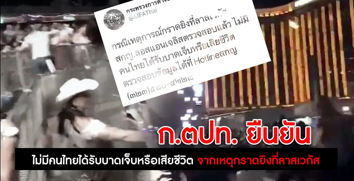 กระทรวงการ ตปท. ยืนยัน ไม่มีคนไทยได้รับบาดเจ็บหรือเสียชีวิต จากเหตุกราดยิงที่ลาสเวกัส