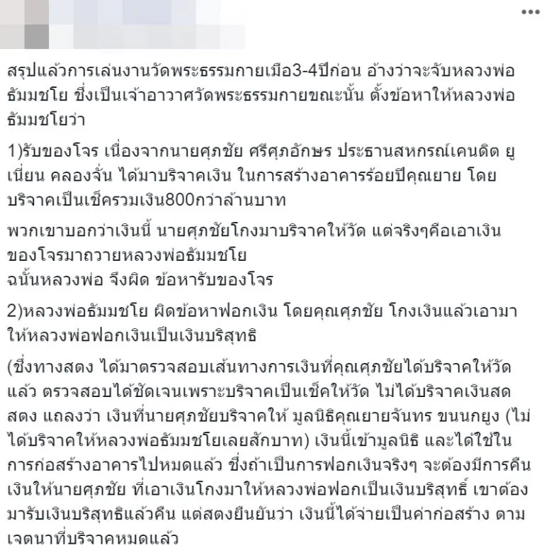 พวกเขาบอกว่าเงินนี้ นายศุภชัยโกงมาบริจาคให้วัด แต่จริงๆ คือเอาเงินของโจรมาถวายหลวงพ่อธัมมชโย ฉะนั้นหลวงพ่อ จึงผิด ข้อหารับของโจร