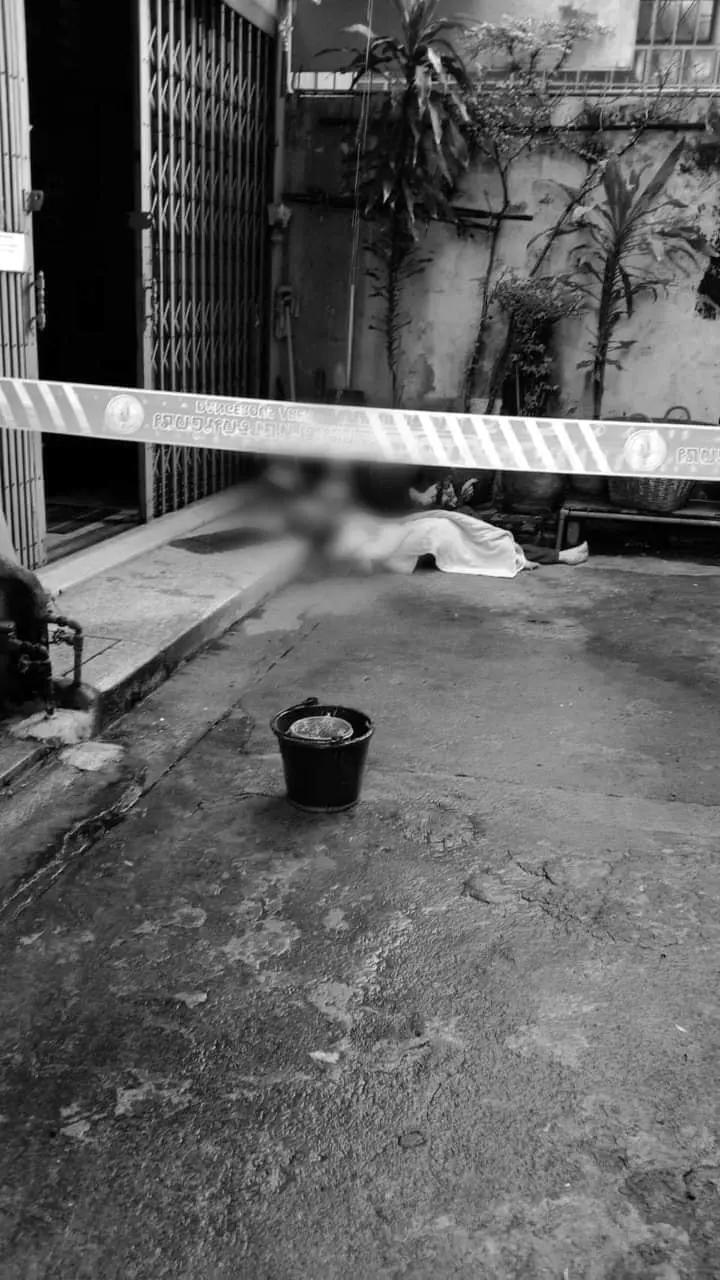 ในที่พบศพชาย 1 ราย คือ นายเป็งกี แซ่เตีย อายุ 84 ปี มีบาดแผลถูกกระแทกที่ศีรษะ ตรวจสอบภายในบ้านพบศพหญิง 1 ราย คือ น.ส. ปราณี หัฐฐะโสธนะ อายุ 57 ปี ลูกสาวของนายเป็งกี ซึ่งเป็นผู้ป่วยติดเตียง และเป็นผู้ป่วยติดเชื้อโควิด-19 จากการสอบสวนทราบว่า ก่อนเกิดเหตุนายเป็งกี มีอาการโศกเศร้า เนื่องจาก น.ส.ปราณี ซึ่งเป็นลูกสาวเสียชีวิตอยู่ภายในบ้าน จึงตัดสินใจกระโดดลงมาจากชั้น 2 ของอาคารเสียชีวิต