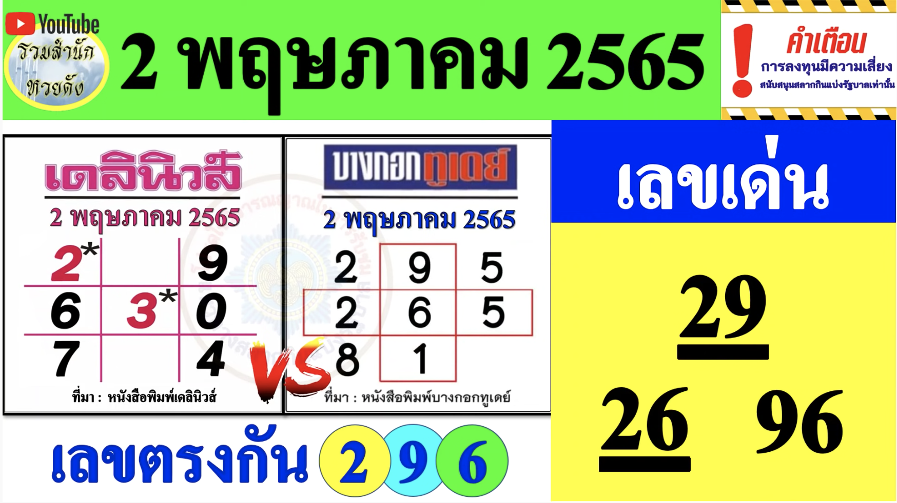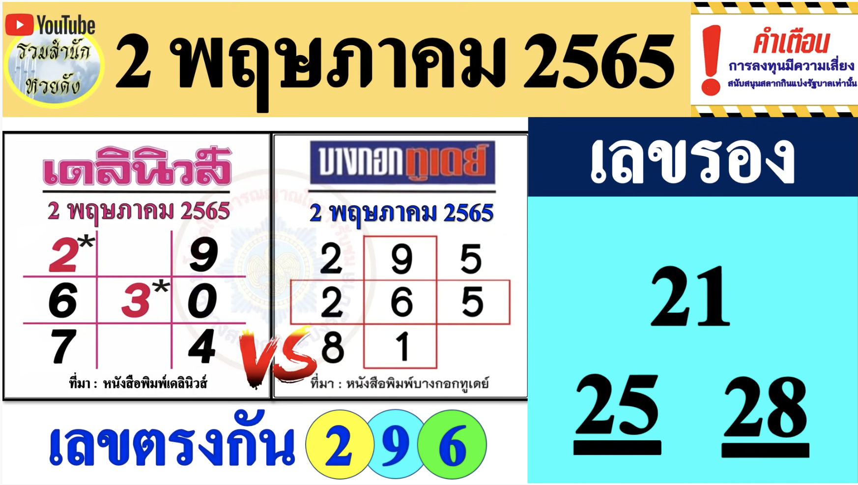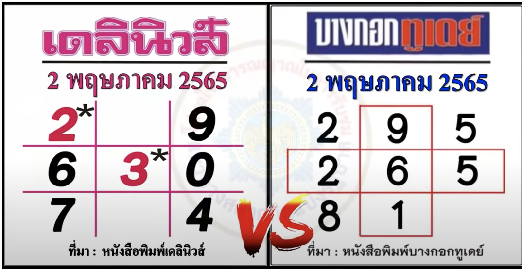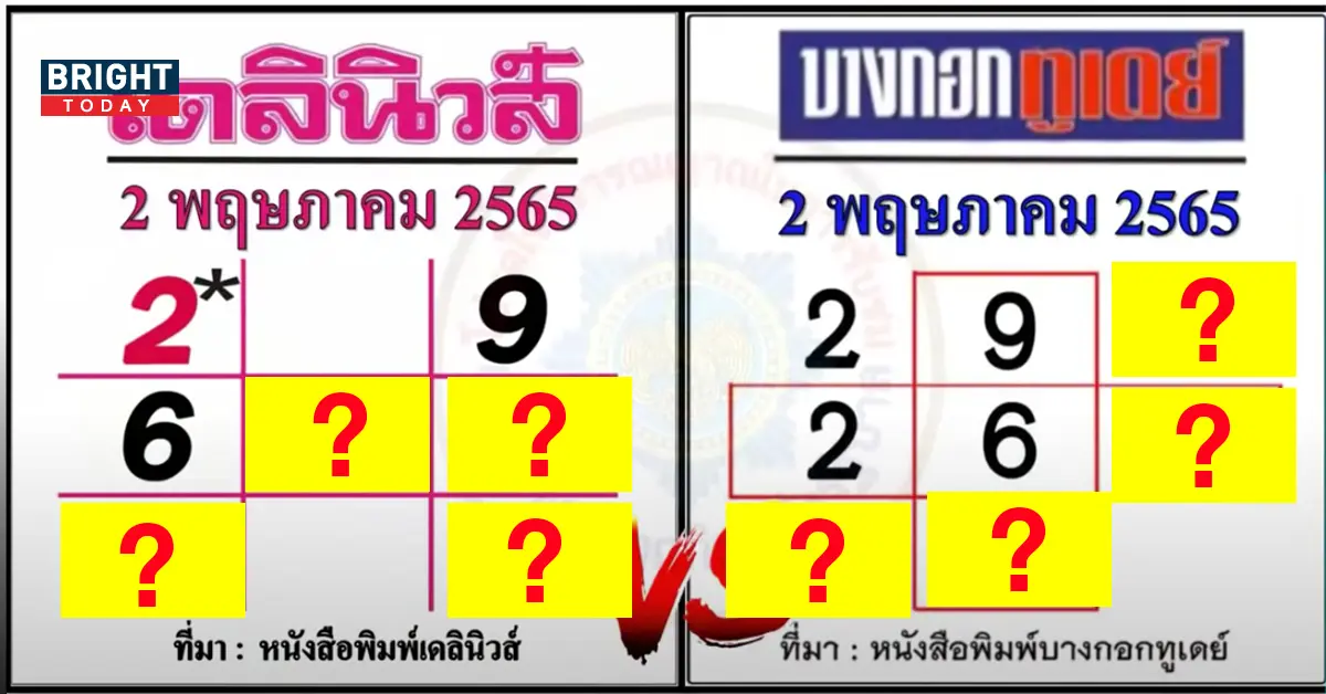 ชนอีกแล้ว! 2-6-9 เลขเด็ดงวดนี้ เดลินิวส์ VS บางกอกทูเดย์ งวดวันที่ 2 พฤษภาคม 2565 ทั้งเลขเด่น เลขรอง เรารวบรวมมาให้ ครบ จบที่เดียว