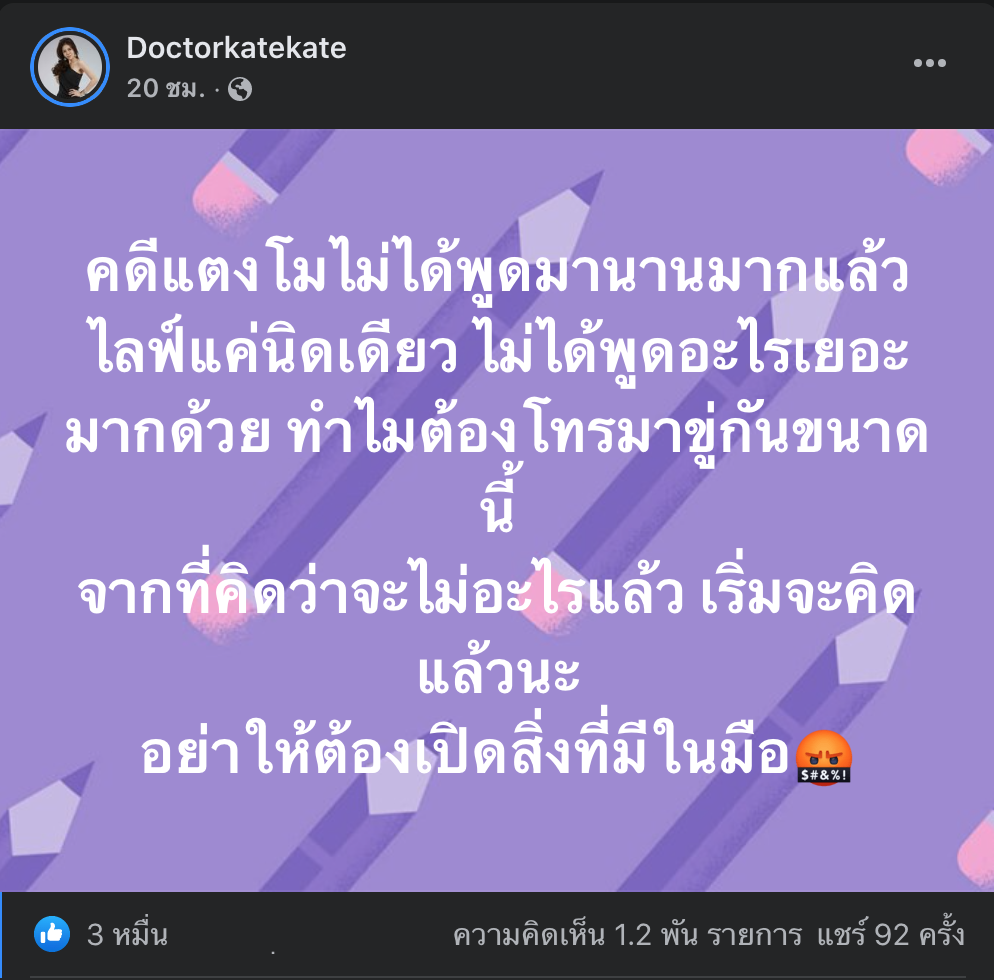 จากกรณีที่ หมอของขวัญ ฟูจิตนิรันดร์ หรือ หมอเคท โพสผ่าน Facebook ส่วนตัวเมื่อ 20 ชั่วโมงที่แล้ว เนื้อหาว่า
