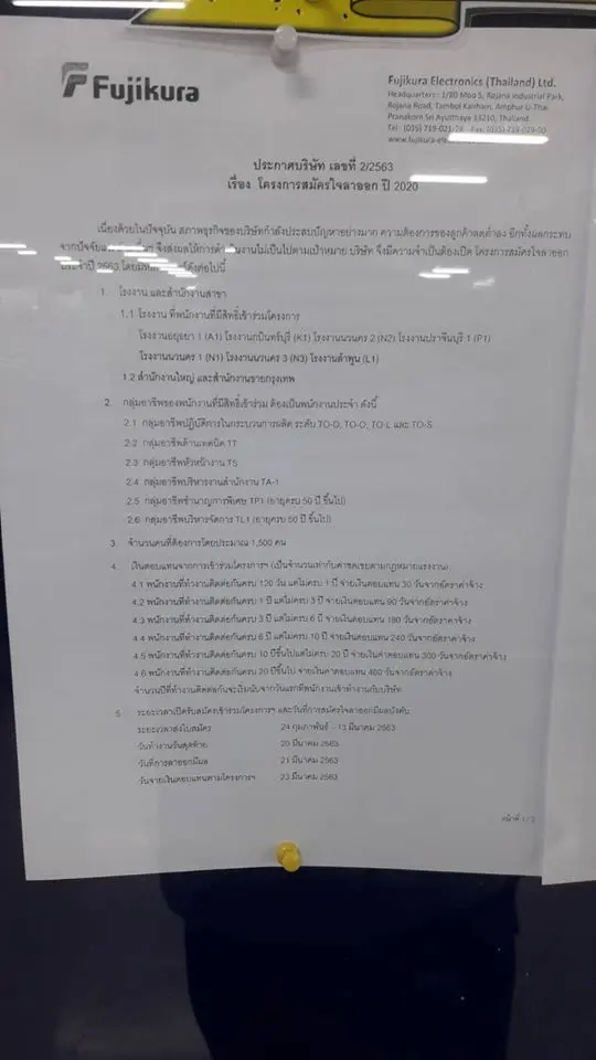 พิษเศรษฐกิจ 24 กพ. 63 รายงานข่าวแจ้งว่า เฟซบุ๊ก สหภาพแรงงานฟูจิคูระปราจีนบุรี ได้โพสต์ประกาศโครงการสมัครใจลาออก ปี 2563 เนื่องจากทนพิษเศรษฐกิจไม่ไหว เนื้อหาระบุว่า เนื่องด้วยในปัจจุบันสภาพธุรกิจของบริษัทกำลังประสบปัญหาอย่างมาก ความต้องการของลูกค้าลดต่ำลง รวมทั้งผลกระทบจากปัจจัยด้านอื่น ๆ จึงส่งผลให้การดำเนินงานไม่เป็นไปตามเป้าหมาย จึงจำเป็นต้องเปิดโครงการสมัครใจลาออก ประจำปี 2563