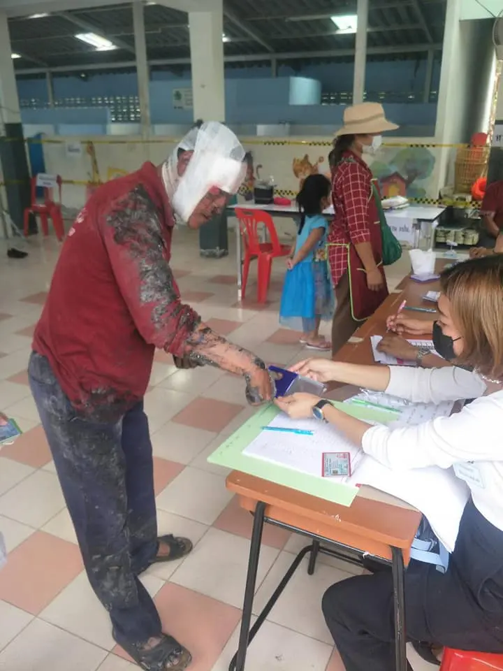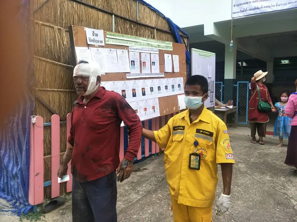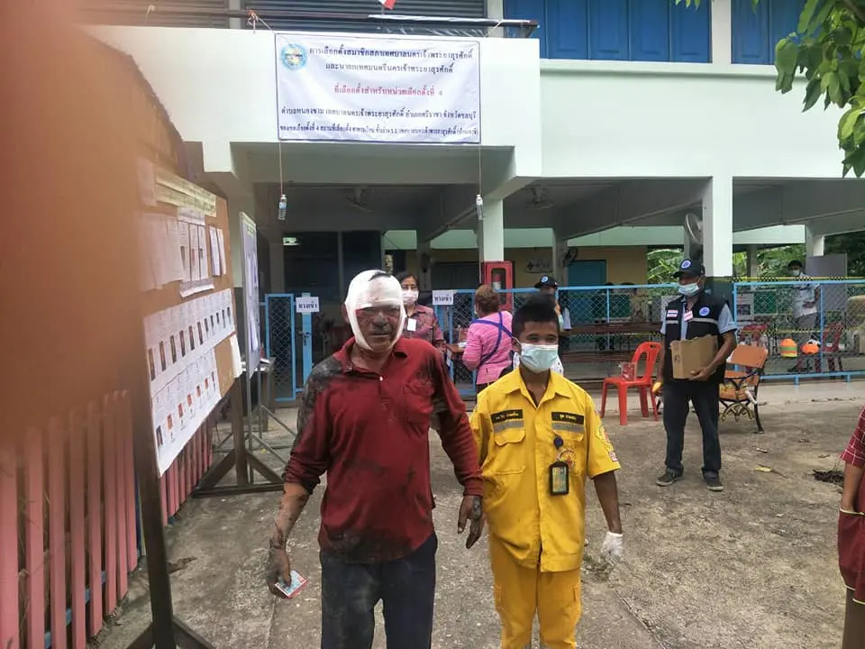 แต่ก็ยังฝืนใจอดทนเข้าคูหาเพื่อ ทำหน้าที่คนไทย ใช้สิทธิ์เลือกตั้ง ซึ่งภายหลังจากที่เลือกตั้งเสร็จ ก็ได้ประสานเจ้าหน้าที่กู้ภัยเพียวเยี้ยงไท้ ศรีราชา นำส่งโรงพยาบาล