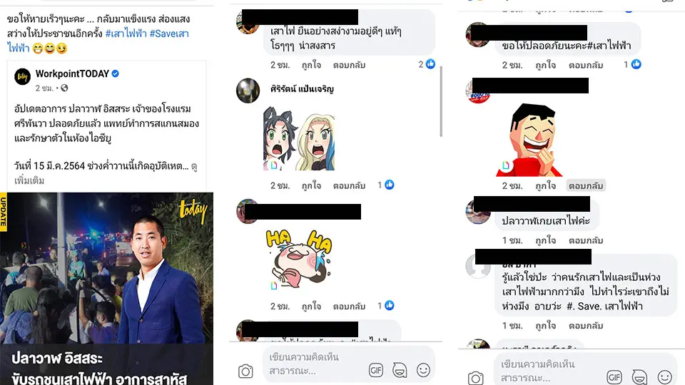 หลังจากนั้นชาวเน็ตเริ่ม ติดแฮชแท็ก #Saveเสาไฟฟ้า ให้กำลังใจเสาไฟ จนกลายเป็นกระแสในโลกออนไลน์อย่างราวเร็ว ซึ่งบางคนก็ได้แสดงความเห็นในเชิงไม่เห็นด้วยกับการซ้ำเดิมผู้บาดเจ็บ โดยให้ความเห็นว่า