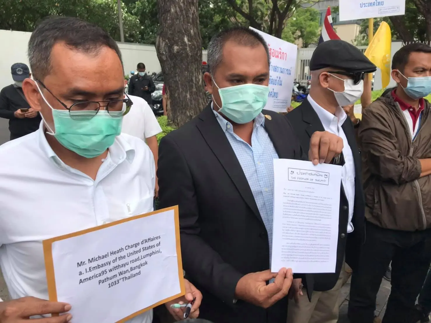 และองค์กรลับ ก่อนแทรกแซงด้วยกำลังทหาร โดยอ้างว่าต้องการให้เกิดประชาธิปไตย ถือเป็นการละเมิดสิทธิมนุษยชนอย่างร้ายแรง ทั้งยังปรากฏว่ามีเจ้าหน้าที่สถานเอกอัครราชทูตสหรัฐอเมริกาประจำประเทศไทยเข้ามามีส่วนสัมพันธ์กับกลุ่มเคลื่อนไหวทางการเมืองไทยอย่างใกล้ชิด ดังนั้นการมาในวันนี้ จึงเป็นการแสดงออกถึงการไม่ยอมรับและขอให้ยุติพฤติกรรมดังกล่าว พร้อมให้คำนึงถึงความร่วมมือทางการฑูตอย่างสร้างสรรค์