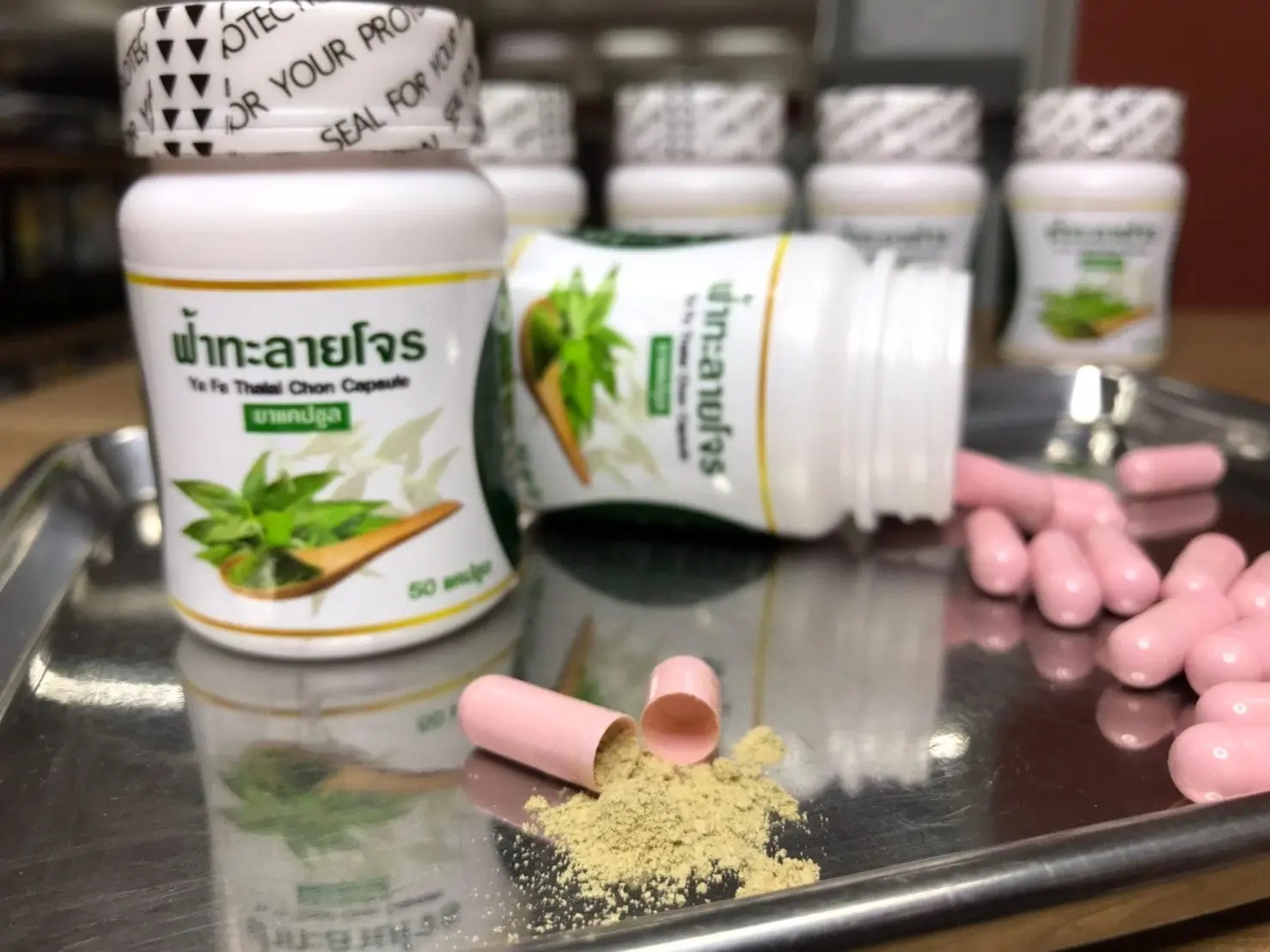 ยาฟ้าทะลายโจรปลอม – (3 ส.ค. 2564) พล.ต.ต.ณัฐศักดิ์ เชาวนาศัย ผบก.ปคบ. , พ.ต.อ.เนติ วงษ์กุหลาบ ผกก.4 บก.ปคบ. และ นพ.ไพศาล ดั่นคุ้ม เลขาธิการคณะกรรมการอาหารและยา ร่วมกันแถลงผลการปฏิบัติจับผู้ต้องหาลักลอบผลิตแคปซูลยาฟ้าทะลายโจรโดยไม่ได้รับอนุญาต ซึ่งตรวจสอบพบว่าใช้ผงบอระเพ็ด บรรจุในแคปซูลแทน ผงฟ้าทะลายโจร รวมมูลค่าของกลางกว่า 400,000 บาท ผู้ต้องหาที่ถูกจับคือ นายธนโชติ อายุ 36 ปี ซึ่งเป็นเจ้าของบ้านหลังหนึ่ง หมู่ 4 ต.กำแพงแสน อ.กำแพงแสน จ.นครปฐม เป็นสถานที่ผลิตยาฟ้าทะลายโจรปลอม โดยยอมรับว่า ลักลอบผลิตยาฟ้าทะลายโจรปลอม โดยทำมานานประมาณ 1 เดือน เนื่องจากช่วงนี้ยาฟ้าทะลายโจรขายดี ทำให้วัตถุดิบหายาก ประกอบกับตนเองมีความรู้ด้านสมุนไพร รู้ว่าบอระเพ็ดมีรสขมคล้ายฟ้าทะลายโจร จึงนำผงบอระเพ็ดบรรจุลงแคปซูลแทนผงฟ้าทะลายโจร เพื่อจำหน่ายให้กับประชาชน เบื้องต้นการกระทำดังกล่าวเป็นความผิดตามพระราชบัญญัติสมุนไพร พ.ศ.2562 ฐาน