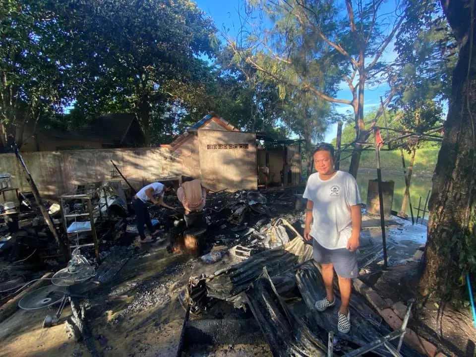 และ “ทุกอย่างไหม้หมด ทุกความโชคร้ายก็มักมีความโชคดี โชคดี ที่ยังไม่มีคนเป็นอะไร พี่ต้น นอนอยู่ในกระท่อม และกระโดดออกจากกลองเพลิงทัน โชคดีที่ไฟไม่ลามไปไหม้บ้านคนอื่น เริ่มใหม่ สร้างใหม่ แค่ทุกคนปลอดภัยก็ดีแล้ว สู้ๆ” โดยเหตุการณืทั้งหมดคาดว่าเกิดจากไฟฟ้าลัดวงจร
