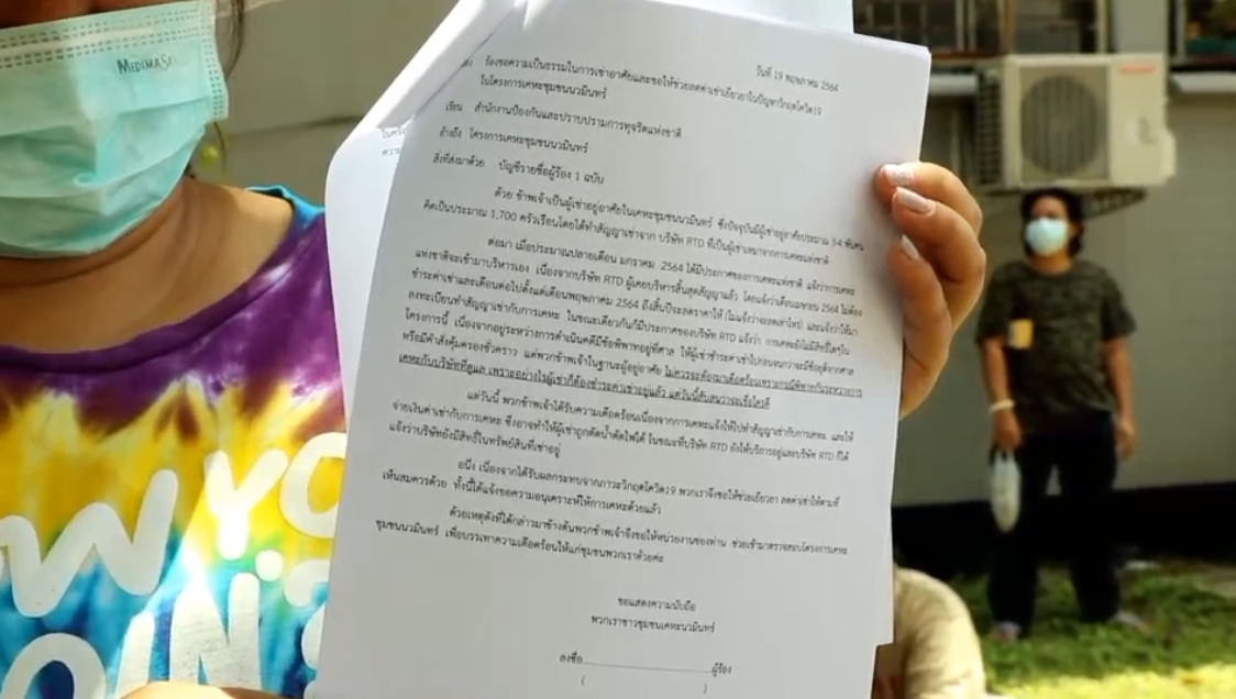น.ส.พัชรา( ขอสงวนนามสกุล ) อายุ 57 ปี ผู้พักอาศัยรายหนึ่ง ระบุว่า พักอาศัยที่นี่มานาน โดยค่าใช้จ่ายทั้งหมด มีการชำระผ่านทาง บริษัทเอกชน ซึ่งตั้งสำนักงานอยู่บริเวณทางเข้าแฟลตเคหะ ซึ่งบริษัทดังกล่าวจะรับผิดชอบดูแลลูกบ้านทั้งหมด หากแต่ในช่วงการระบาดโควิด-19 ระลอกใหม่ ทางสำนักงานการเคหะได้ประกาศแจ้งให้ ผู้พักอาศัยเปลี่ยนขั้นตอนการดำเนินการทั้งหมดไปให้ทางการเคหะ ซึ่งทำให้เกิดความสับสนว่า ตกลงแล้ว ฝ่ายใดทำหน้าที่รับผิดชอบกันแน่ เนื่องจากในช่วงนี้ผู้พักอาศัยทั้งหมดได้รับผลกระทบจากโควิด-19 ซึ่งบางส่วนอาจต้องการขอผ่อนปรนในกรณีค่าใช้จ่ายต่างๆ แต่ทั้งนี้ ทั้งบริษัทเอกชน และ การเคหะฯ ต่างก็แสดงกรรมสิทธิ์ทั้งสองฝ่าย
