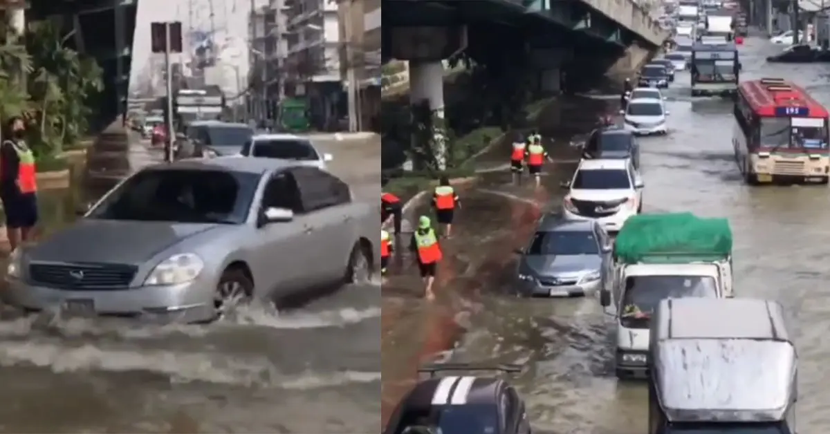 โดยขณะนี้ ยังไม่สามารถประเมินได้ว่าสถานการณ์จะคลี่คลายลงเมื่อใดเนื่องจากอาจมีปริมาณน้ำฝนตกลงมาซ้ำอีกดังนั้นจึงฝากประชาสัมพันธ์ขอให้พี่น้องประชาชนที่จะสัญจรบนถนนพระราม 3 ทั้งขาเข้าและขาออกกรุณาหลีกเลี่ยงเส้นทางไปก่อน”