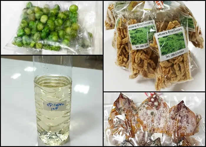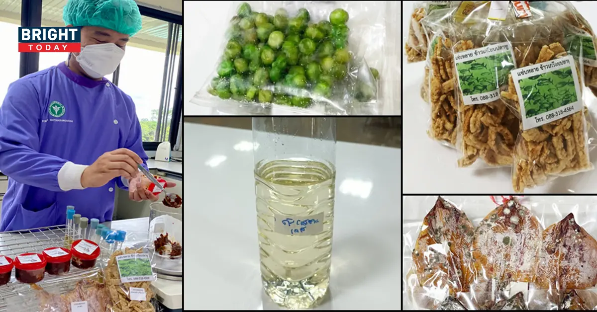 ฉบับที่ 3 สาเหตุเนื่องจากในตัวอย่างข้าวเกรียบปลาทู ถั่วลันเตาคลุกเกลือ และปลาหมึกแห้ง ตรวจพบเชื้อราเกินมาตรฐานกำหนด
