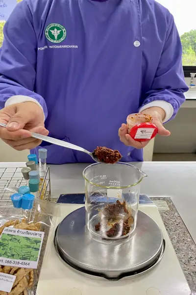 ผลการตรวจสอบคุณภาพข้าวเกรียบปลาทู ถั่วลันเตาคลุกเกลือ ปลาหมึกแห้ง จำนวน 3 ตัวอย่าง