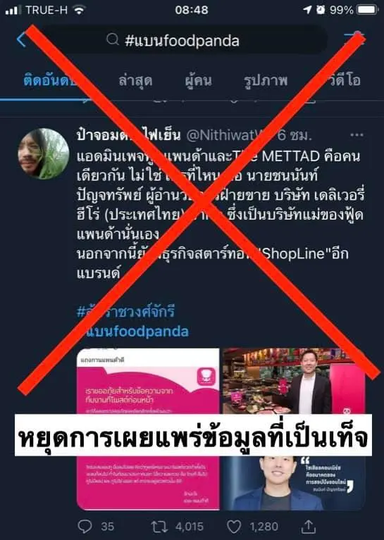 และไม่มีส่วนเกี่ยวข้องใดๆ ต่อกันแล้วครับ และตอนที่ผมอยู่ก็ไม่เคยดูแลแอดมินเพจของทาง foodpanda เลยและผมก็ไม่ได้มีส่วนเกี่ยวข้องใดๆ กับเพจ Mettad ตามที่ได้มีการกล่าวถึงเช่นกัน ขอความกรุณาหยุดเผยแพร่และผลิตซ้ำเนื้อหาที่เป็นเท็จหรือไม่เป็นความจริงนี้ด้วยครับขอบคุณมากครับ