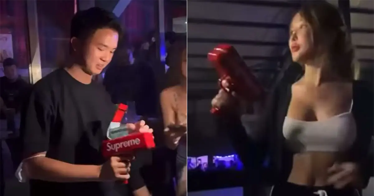 สาวสุดเซ็กซี่ ใช้ปืนยิงโปรยเงินแจกเกือบ 8 แสน ในโอกาสที่ ผับได้กลับมาเปิดได้ ให้บริการอีกครั้ง สังคมจวกเอาเงินมาใช้ไร้สาระ