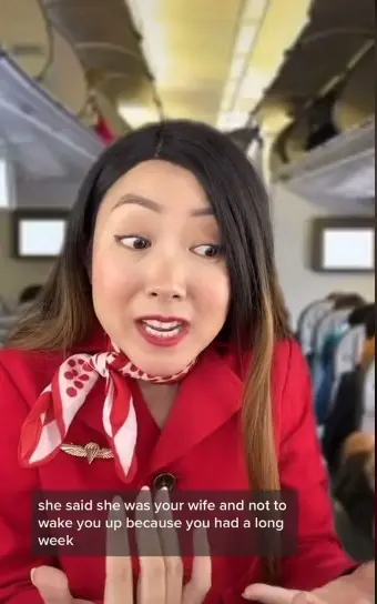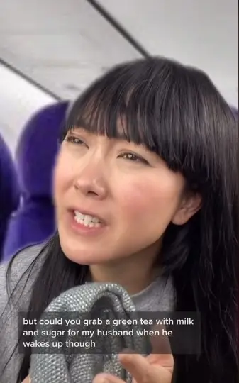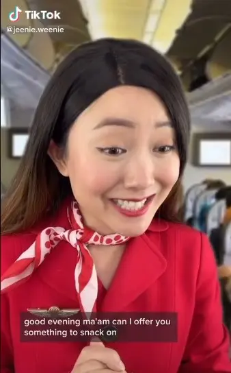 โดยเธอได้เล่าเรื่องราวผ่าน TikTok @jeenie.weenie ว่าเรื่องราวเกิดขึ้นขณะที่เธอทำงานตามปกติคอยบริการผู้โดยสารอยู่บนเครื่องบิน ในระหว่างนั้นเธอเห็นว่ามีผู้โดยสารหญิงที่มากับสามีที่ดูเหมือนว่าตั้งแต่ขึ้นเครื่องมายังไม่ได้กินอะไรเลยจึงเข้าไปสอบถามว่าต้องการอะไรหรือไม่