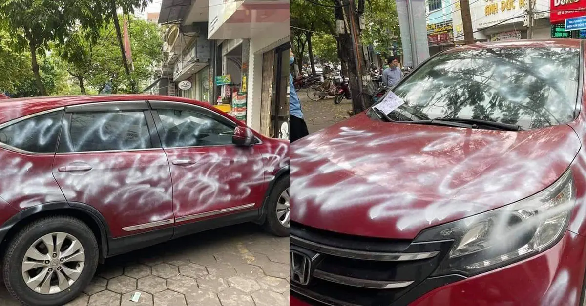 เจ้าของรถแดงร้องเรียน ถูก พ่นสีรถ รอบคัน พร้อมข้อความว่า “จอดรถให้มีสติ” ร้อนถึงเจ้าหน้าที่ตำรวจมาเคลียร์ปัญหา เกิดเหตุที่ประเทศเวียดนาม
