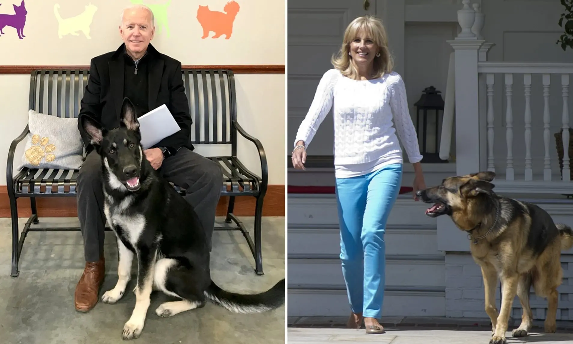 แชมป์ และเมเจอร์ ต่างเป็นสุนัขพันธุ์เยอรมันเชพเพิร์ด โดยสุนัขตัวแรกคือ แชมป์ เป็นสุนัขที่อยู่กับนายไบเดนมาตั้งแต่ปี 2008 เพียงหนึ่งเดือนหลังจากที่อดีตประธานาธิบดีบารัก โอบามาชนะเลือกตั้งประธานาธิบดี ซึ่งหลานทั้ง 2 คนของนายไบเดนก็เป็นคนตั้งชื่อให้ โดยนี่จะเป็นครั้งที่ 2 ที่แชมป์จะได้กลับอยู่ทำเนียบขาวอีกครั้ง