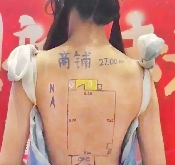 แปลนห้องพัก — เกิดประเด็นดรามาในโลกโซเชียลของจีน เมื่อบริษัทพัฒนาอสังหาริมทรัพย์แห่งหนึ่งในเมืองซีอานของจีนได้วาดภาพแปลนห้องที่อยู่อาศัย บนแผ่นหลังอันเปลือยเปล่าของนางแบบสาวในงานโปรโมทของบริษัท