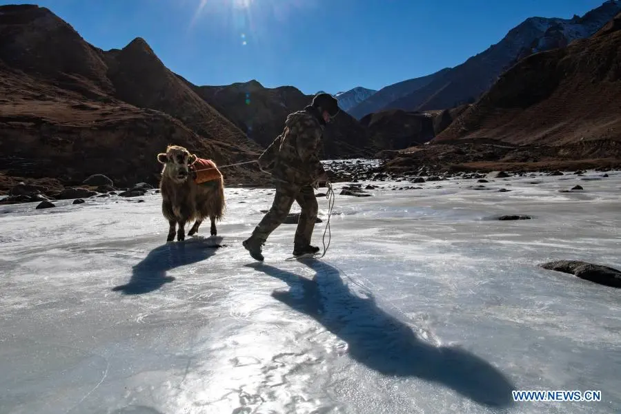 เผยภาพเจ้าหน้าที่หน่วยย่อยของ ซินเจียง ที่ระดับความสูงจากน้ำทะเลเฉลี่ย 4 พันเมตร ออกลาดตระเวนชายแดนซินเจียงพร้อมจามรีคู่ใจ