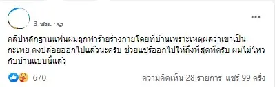แฟนผมถูกทำร้ายร่างกายโดยคนที่บ้าน แชร์ออกไปให้ถึงที่สุดครับ ผมเอาเรื่อง คลิปหลักฐานแฟนผมถูกทำร้ายร่างกายโดยที่บ้านเพราะเหตุผลว่าเขาเป็นกะเทย คงปล่อยออกไปแล้วนะครับ ช่วยแชร์ออกไปให้ถึงที่สุดทีครับ ผมไม่ไหวกับบ้านแบบนี้แล้ว