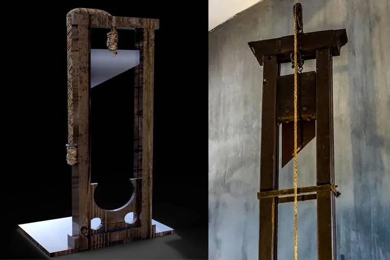 ซึ่งเครื่องมือที่ ที่ใช้ประกอบพิะีสุดสยองดังกล่าว มีชื่อว่า กิโยติน (guillotine) เดิมมีชื่อว่า ลุยซง หรือ ลุยแซ็ต ตามผู้คิดค้นกระบวนการทำงานโดยศัลยแพทย์ชาวฝรั่งเศส อ็องตวน หลุยส์ ก่อนจะถูกเปลี่ยนเป็นชื่อ กีโยติน ตามผู้เสนอวิธีประหารนี้แทนนั่นคือ โจเซฟ-อีญัส กีโยตน แพทย์ชาวฝรั่งเศสและสมาชิกสมัชชาแห่งชาติ ที่เสนอในปี ค.ศ.1789