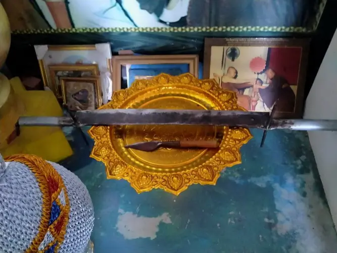 ซึ่งตามคำให้การของผู้อยู่ในเหตุการที่ พระธรรมกร ปลิดชีะตัวเองนั้นได้ระบุว่า พระธรรมกร และเหล่า ลูกศิษย์ได้ร่วมกันสร้างขึ้น กิโยติน ขึ้นเองทั้งหมด โดยจะเป็นเป็นเสาไม้ตั้งสูงสองเสา มีใบมีดใหญ่กว้าง 4 นิ้ว ยาว 1 เมตรอยู่ตรงกลาง มีถังทรายถ่วงน้ำหนักอยู่สองด้าน มีเชือกดึงด้วยเพื่อเปิดกลไกให้ใบมีดตกลงมาตัดคอตนเอง