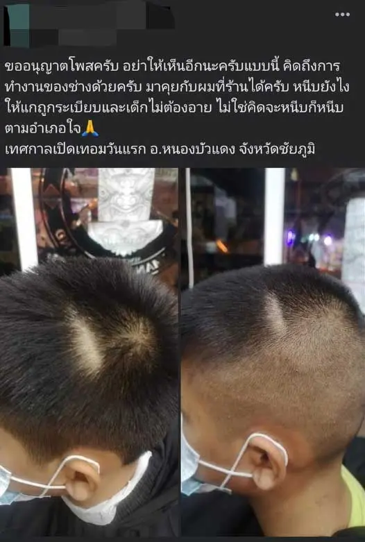 ช่างตัดผมสงสารเด็ก ขอ อย่าลงโทษตัดผมนักเรียน แบบนี้ – ช่างตัดผมคนหนึ่งใน จ.ชัยภูมิ โพสต์รูปรูปนักเรียนคนหนึ่งที่ถูกครูตัดผม ทำโทษในวันเปิดเทอม โดย ตัดสั้นลึกเกินไป แก้ทรงแล้วก็ตาม จึงได้อยากบอกกับครูว่าอย่า ตัดผมนักเรียนลึกเช่นนี้ และอยากให้คิดถึงการทำงานของช่างตัดผมด้วย ถ้าอยากทราบถึงวิธีตัดผมนักเรียนให้ถูกต้อง ควรมาคุยกับตนหรือช่างตัดผมคนอื่น โดยเจ้าตัวได้โพสต์ระบุว่า