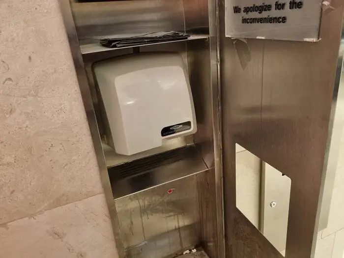 ไม่มีฝาครอบปิดช่องระบายอากาศ ทำให้มือของเด็กสอดเข้าไปจนถึงบริเวณใบพัด ซึ่งเขาก็คิดว่าอาจเป็นเพราะเครื่องชำรุดลูกสาวเลยคิดว่าเป็นเครื่องจ่ายกระดาษชำระ จึงเอามือสอดเข้าไป เป็นเหตุให้ใบพัด ฟาดกระดูกนิ้วของลูกสาวจนแตก อีกทั้งในระหว่างเกิดเหตุต้องไม่สามารถหากุญแจมาเปิดตู้ได้จนต้องงัดฝาครอบออกทั้งหมด