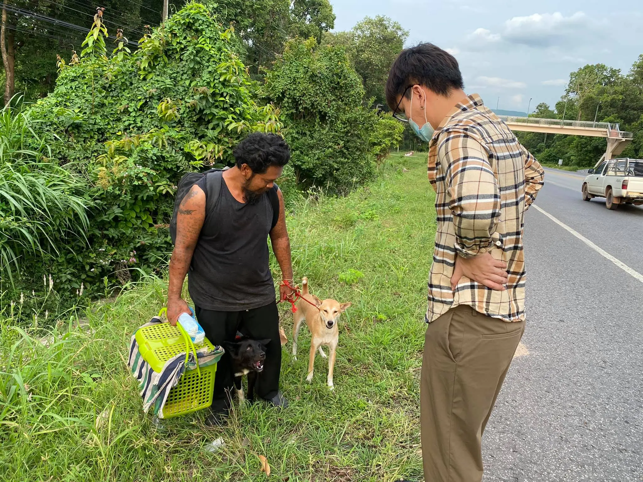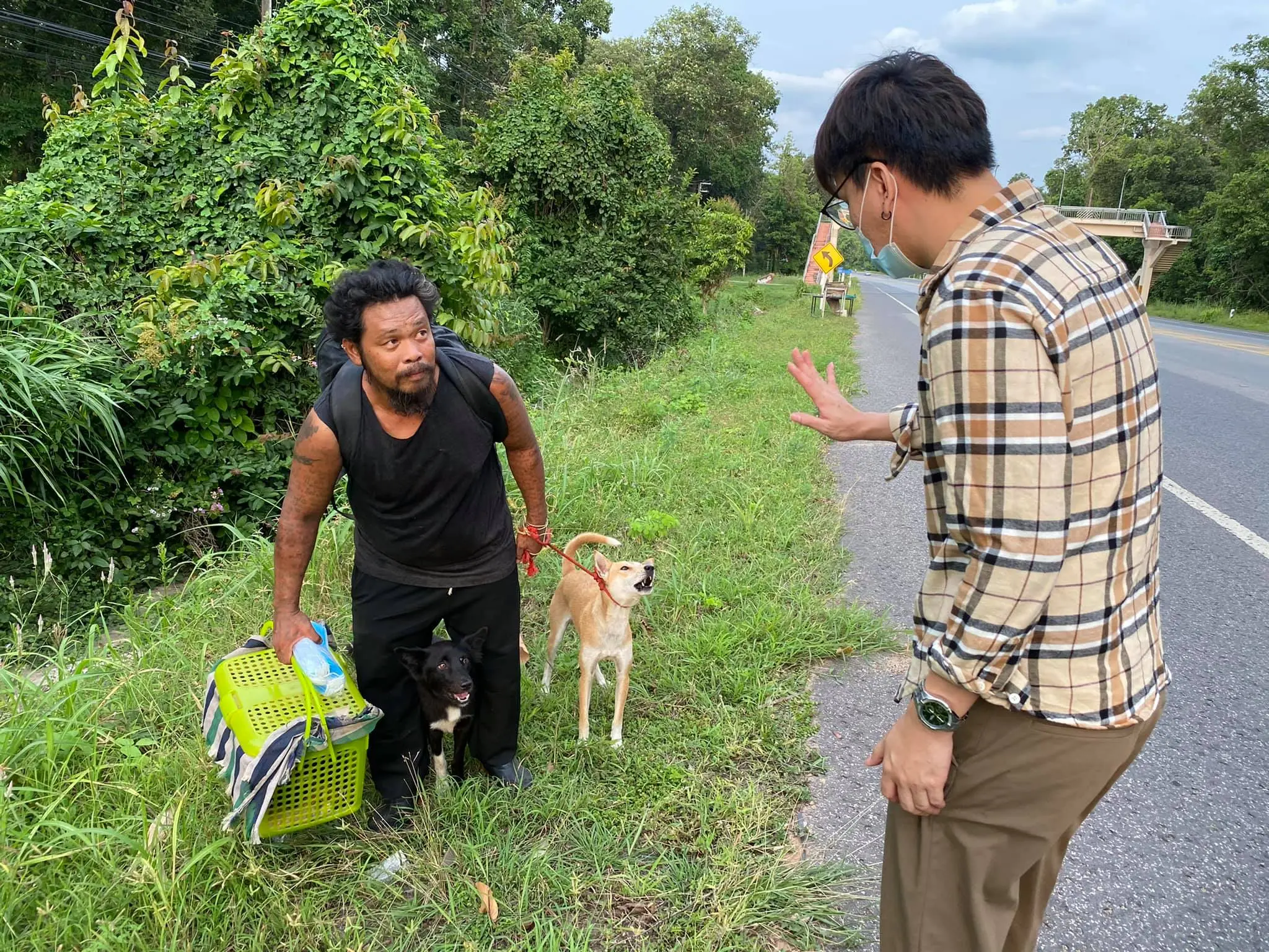 โดยมีตำรวจเป็นพยานแต่ล่าสุดที่บูมไปพบหนุ่มรายนี้โดยบังเอิญ แบบไม่ได้เตรียมตัวและเตียมทีมงานไป ตอนนั้นใกล้ค่ำและแถวนั้นไม่มีบ้านคนเลย บูมรู้สึกไม่ปลอดภัยต่อตัวเองและ พี่สาว ที่ไปด้วยกัน บูมเลยแก้ปัญหาเฉพาะหน้า คือก็ได้ให้เงินจำนวนหนึ่ง ไปบอกให้เอาไปซื้อนมให้ลูกหมา และให้ไปซื้อสายจูงใหม่ #แต่ที่บูมอยากทราบคือทำไมยังไม่มีการคืบหน้าของเคสนี้#ตอนที่เป็นข่าวดังเห็นมีไม่รู้กี่หน่วยงานเข้าช่วยเหลือ ซึ่งบูมเป็นห่วงน้องๆหมาที่อยู่ในสถานะภาพตอนนี้ บูมพยายาม ขอดูแลน้องๆต่อ พี่เค้าก็แสดงอาการที่ไม่พอใจ และบูมกลัวเป็นอันตรายต่อตัวเอง เลยไม่กล้าที่จะพูดเยอะ เลยทำได้เท่าที่ทำได้ ณ. ตอนนั้น