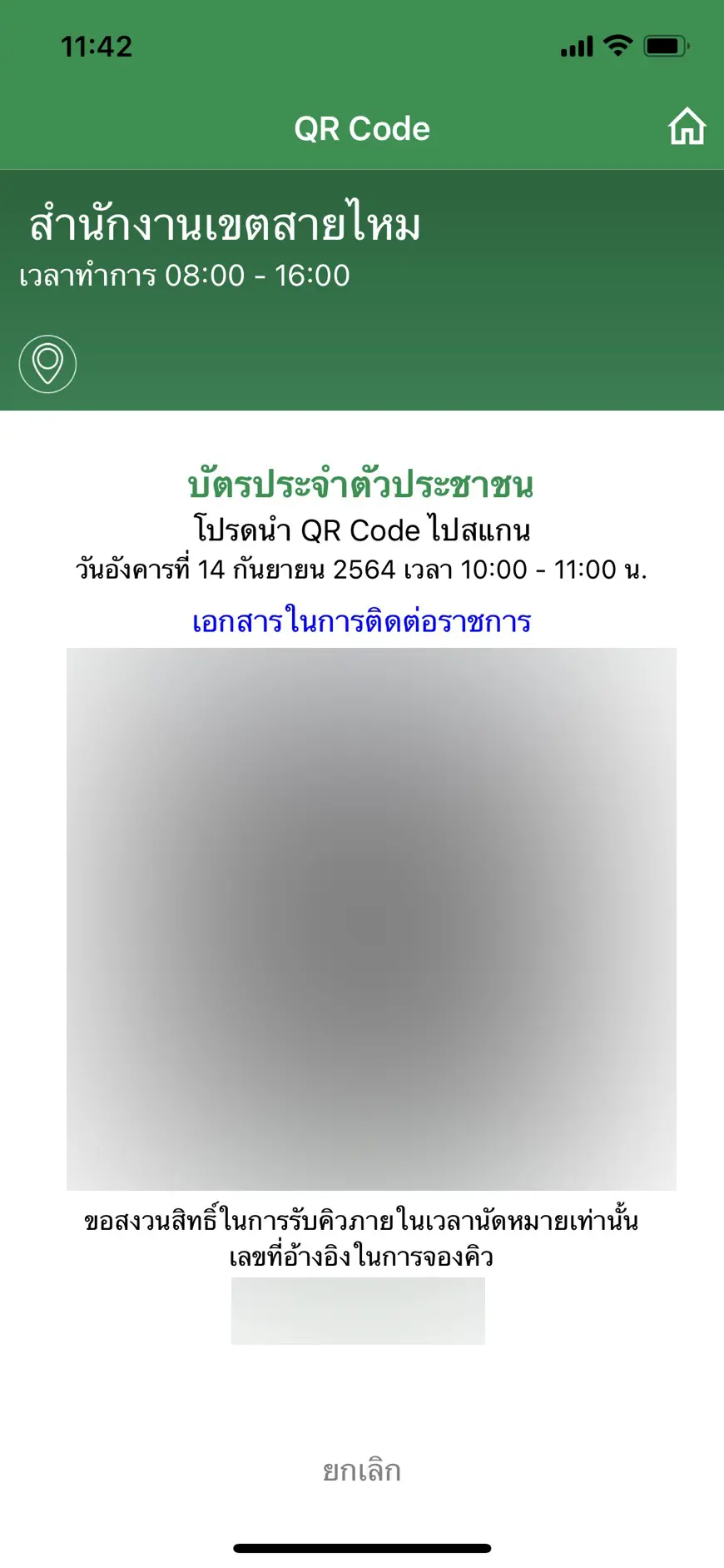 - นำ QR Code ที่ได้รับ เดินทางไปยังสำนักงานเขตที่เลือกไว้ ตามวันและเวลาที่นัดหมาย โดยแจ้งเจ้าหน้าที่ว่ามาทำบัตรประชาชนและจองคิวไว้ผ่าน