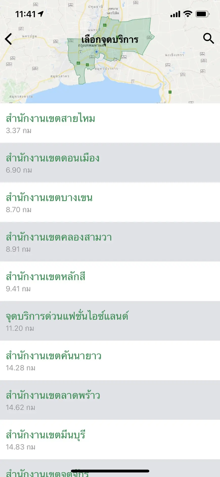 - เลือกจุดบริการ โดยเลือกสำนักงานเขตที่ต้องการเข้ารับบริการ