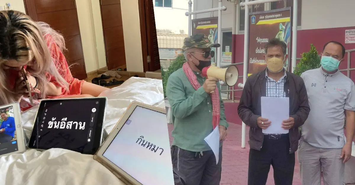 วานนี้ 7 พ.ย. ที่ สภ.เมืองขอนแก่น จ.ขอนแก่น นายคุ้มพงษ์ ภูมิภูเขียว หรือทนายแดง อายุ 60 ปี ตัวแทนกลุ่ม “คนอีสาน..บ่ทน” พร้อมด้วย นายอัจฉริยะ วงษ์คำซาว นายชัยชนะ ทัศนิยม และสมาชิกในกลุ่ม นำรถขยายเสียง พร้อมป้ายติดข้างรถ ข้อความว่า “หยุด ย่ำยี เหยียดหยาม คนอีสาน” โดยจอดอ่านแถลงการณ์ หน้าอาคาร สภ.เมืองขอนแก่น
