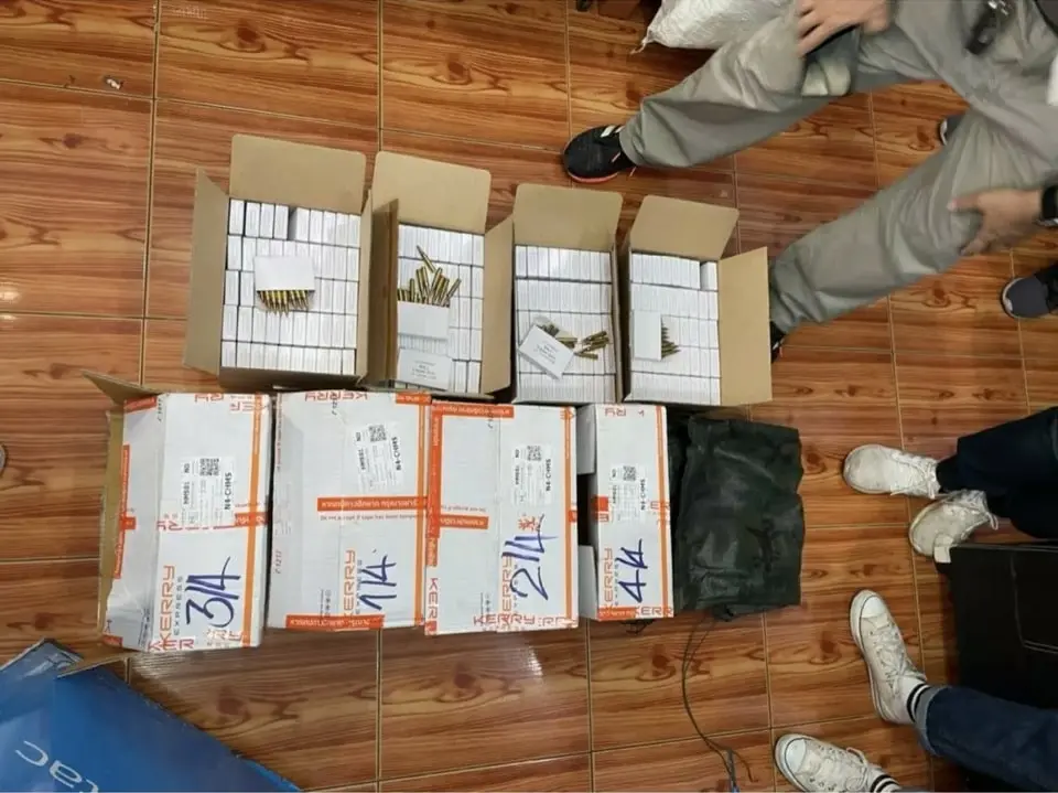 เตรียมส่งข้ามไป ฝั่งเมียนมาสืบเนื่องจาก วันที่ 28 มี.ค. ได้รับแจ้งจากร้านศักดิ์โมบายรับฝากสินค้า ให้มาตรวจสอบกล่องวัสดุจำนวน 6 กล่อง เมื่อเจ้าหน้าที่เปิดดูพบลูกกระสุนปืนไรเฟิลจู่โจมแบบ เอ็ม 16 และเอชเค รวมทั้งหมด 6,000 นัด ระเบิดขว้างสังหารบุคคล รุ่น K75 จำนวน 52 ลูก จึงได้ตรวจสอบชื่อ และที่อยู่ผู้รับ และผู้ส่งอย่างละเอียด พบทุกกล่องส่งมาจากชื่อ และหมายเลขโทรศัพท์บุคคลเดียวกัน ต่อมามี นายมโนกรณ์ สั่งสอน อายุ 30 ปี