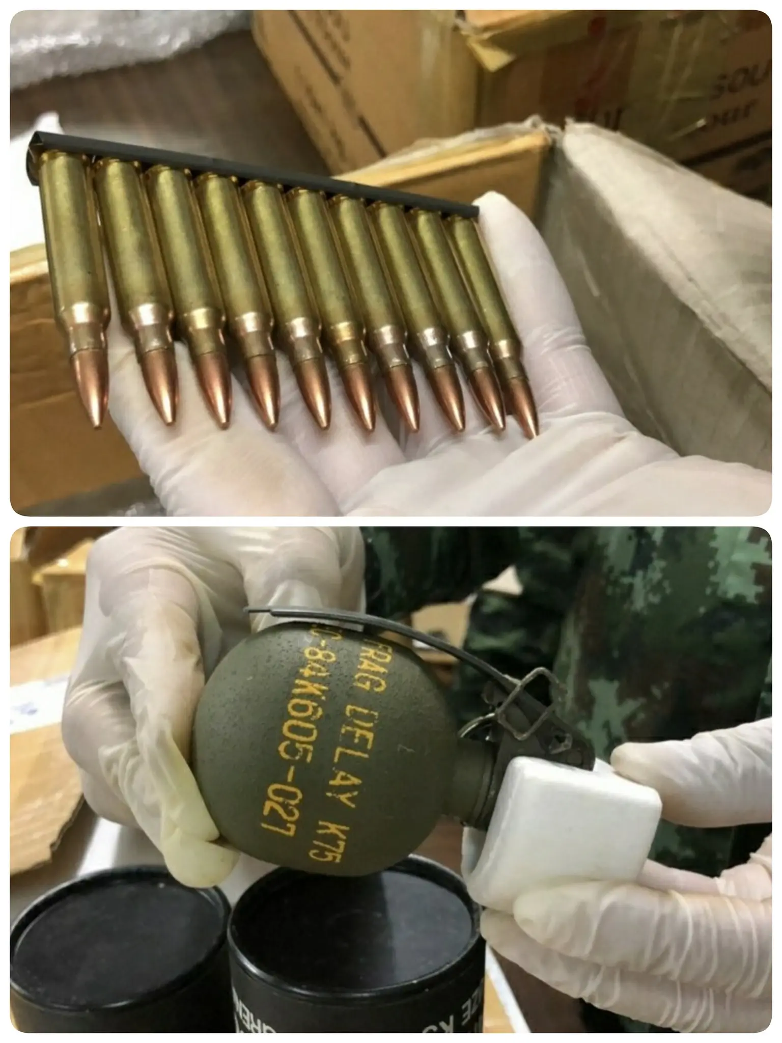 ระเบิด ส่ง Kerry เมื่อวันที่ 29 มีนาคม 2564 พ.ต.อ.พิพัฒน์ นาระเดช ผกก.สภ.แม่สาย จ.เชียงราย เจ้าหน้าที่ฝ่ายปกครอง อ.แม่สาย ร่วมกันตรวจสอบของกลาง กระสุนปืนขนาด 5.56 มม. ใช้กับปืนไรเฟิลจู่โจม รวม 6,000 นัด ระเบิดขว้างสังหารบุคคล รุ่น K75 จำนวน 52 ลูก เพื่อเตรียมส่งให้กรมสรรพาวุธตรวจสอบพิสูจน์ หลังจากเจ้าหน้าที่ตำรวจได้ยึดมาจากร้านรับฝากของ