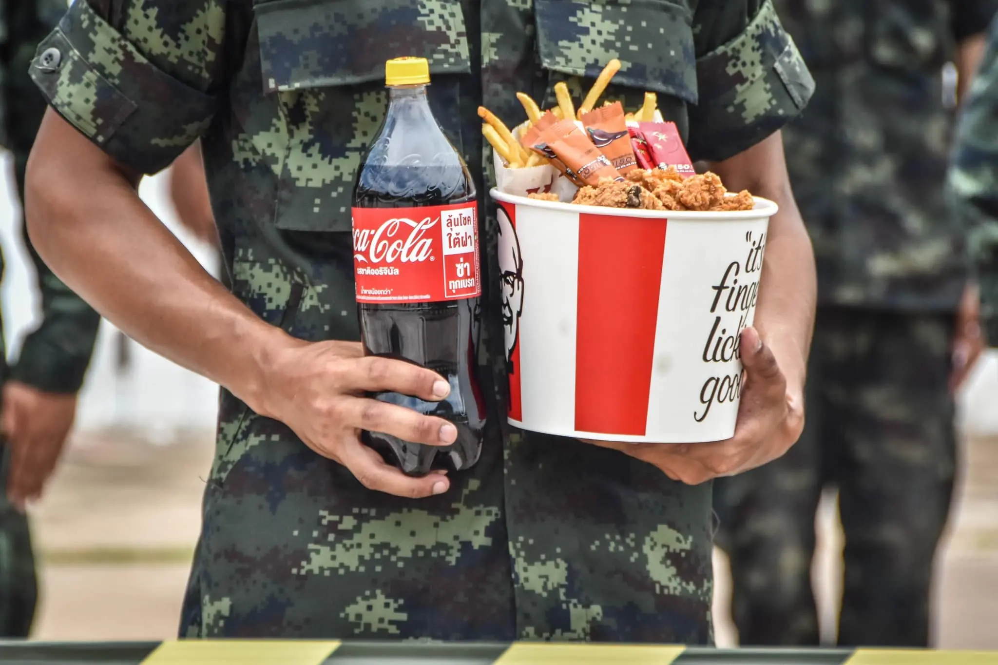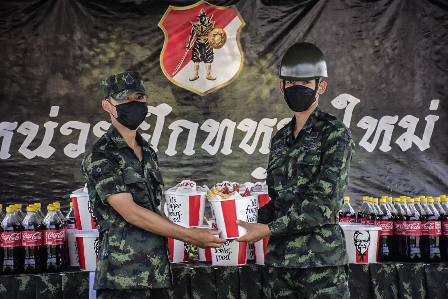 วานนี้ เฟซบุ๊ก กองทัพบก Royal Thai Army โพสต์ภาพและข้อความโมเมนต์มื้ออร่อยของเหล่าทหารรั้วของชาติด้วยการจัดเลี้ยงอาหารพิเศษไก่ทอด KFC ให้กับน้องทหารใหม่ เพื่อเป็นการสร้างขวัญกำลังใจ โดยได้ระบุข้อความว่า