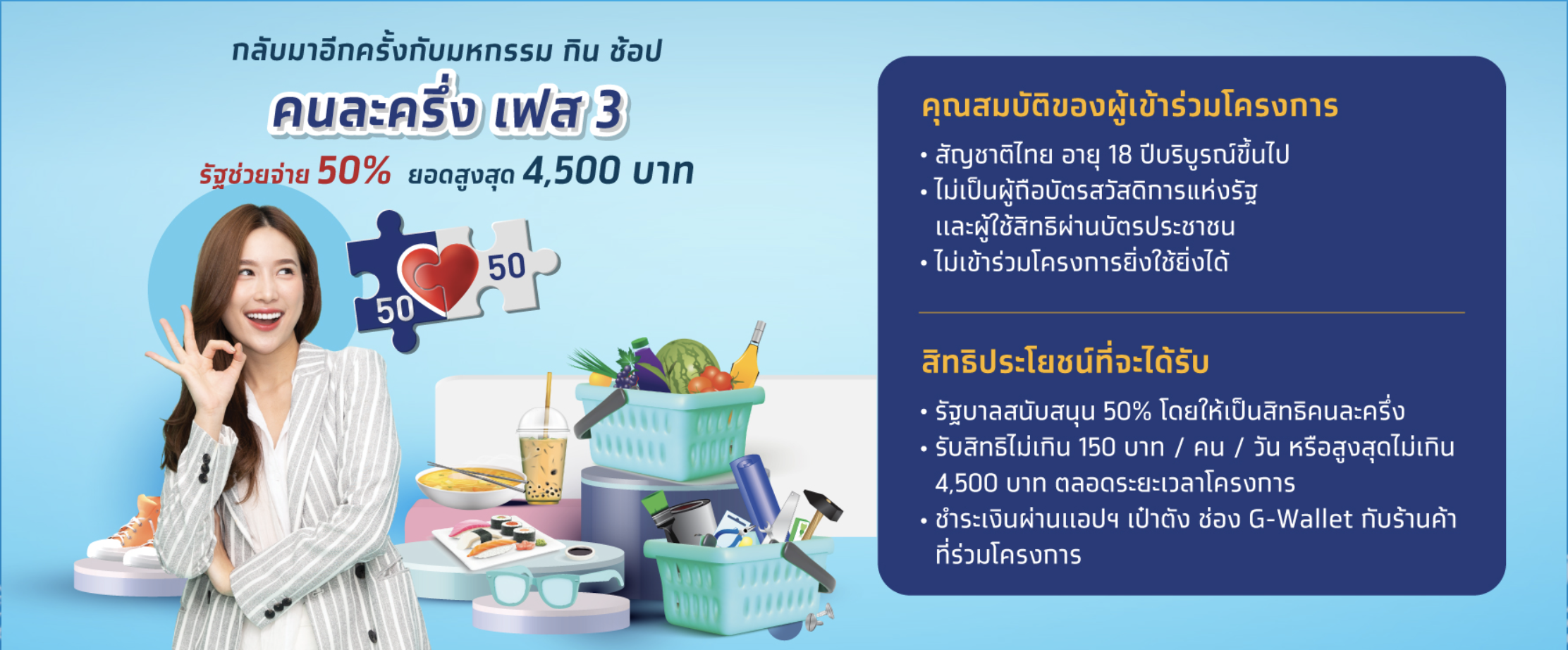 - เบื้องต้นผู้ที่ได้รับสืทธิคนละครึ่งเฟส 3 จำนวนกว่า 27.98 ล้านราย ไม่ต้องลงทะเบียนใหม่ในเฟสที่ 4