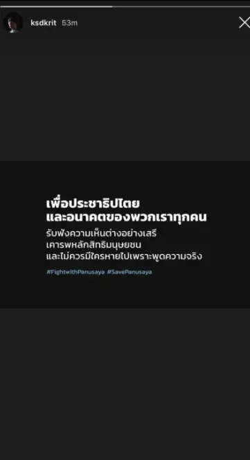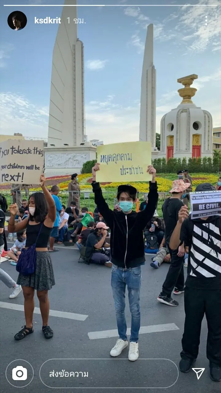 กิตงาย จากเหตุการณ์สถานการณ์บ้านเมืองในตอนนี้ ทำเอาเหล่าคนดังในแวดวงบันเทิงทั้งไทย และ ต่างประเทศ เริ่มออกมาโพสต์แสดงความคิดเห็น เพื่อเป็นกระบอกเสียงในการออกมาใช้สิทธิและเรียกร้องประชาธิปไตยกันเป็นจำนวนมาก