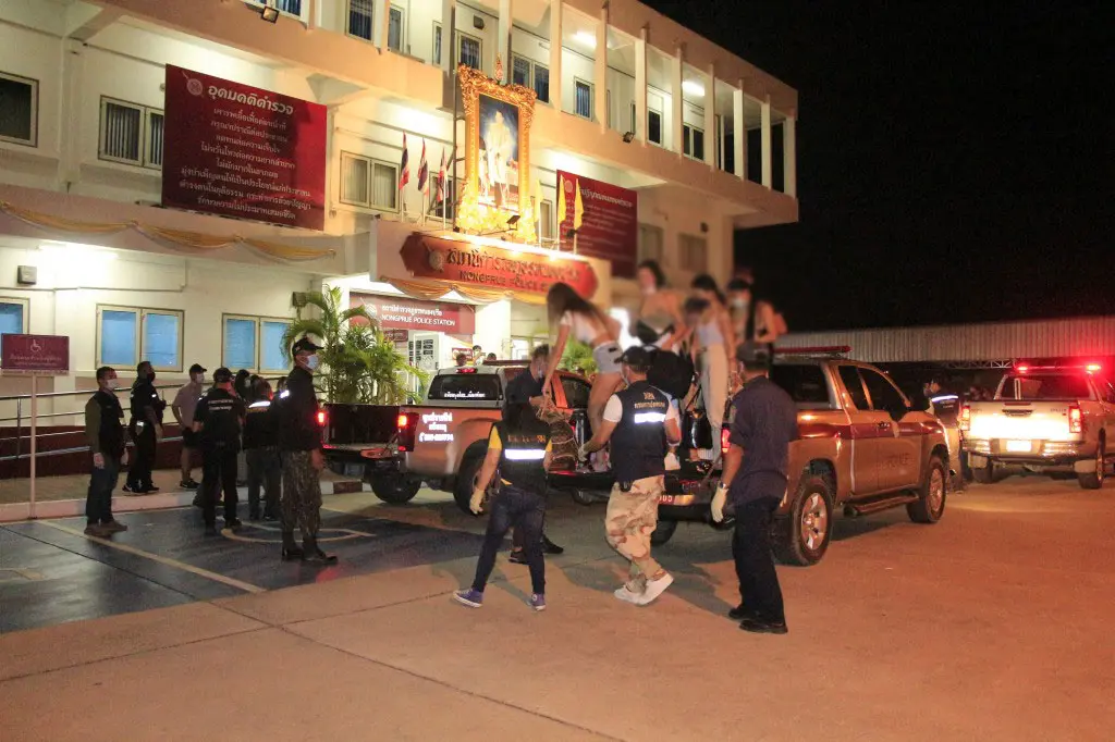 เบื้องต้นได้ควบคุมตัวทั้งหมดมายัง สภ.หนองปรือ เพื่อตรวจสอบประวัติบุคคล ทั้ง 28 ราย พร้อมชี้แจ้งในความผิดที่เสี่ยงต่อการแพร่ระบาดของเชื้อไวรัสโควิด 19 ซึ่งบางรายไม่ทราบว่ามีความผิด เจ้าหน้าที่จึงให้ล่ามแปลาภาษาอธิบายว่า ในการแก้ไขสถานการณ์ฉุกเฉินเพื่อเป็นการลดการแพร่ระบาดของการติดเชื้อโรคโควิด 19 มีให้ขยายไปในวงกว้าง จึงห้ามการชุมนุม การทำกิจกรรม หรือการมั่วสุมในลักษณะที่เสี่ยงต่อการแพร่เชื้อโรค หรือการกระทำอันเป็นการฉวยโอกาสซ้ำเติมความเดือดร้อนของประชาชน หรือการกลั่นแกล้งเพื่อแพร่เชื้อโรค ณ ที่ใดๆ ทั่วราชอาณาจักร ก่อนแจ้งข้อกล่าวหาร่วมกันชุมนุมทำกิจกรรมหรือการมั่วสุมกัน ณ ที่ใดๆ ในสถานที่แออัด” อันเป็นการฝ่าฝืน พรก.การบริหารราชการในสถานการณ์ฉุกเฉิน พ.ศ.2548 ส่งพนักงานสอบสวนดำเนินคดีตามกฎหมายต่อไป