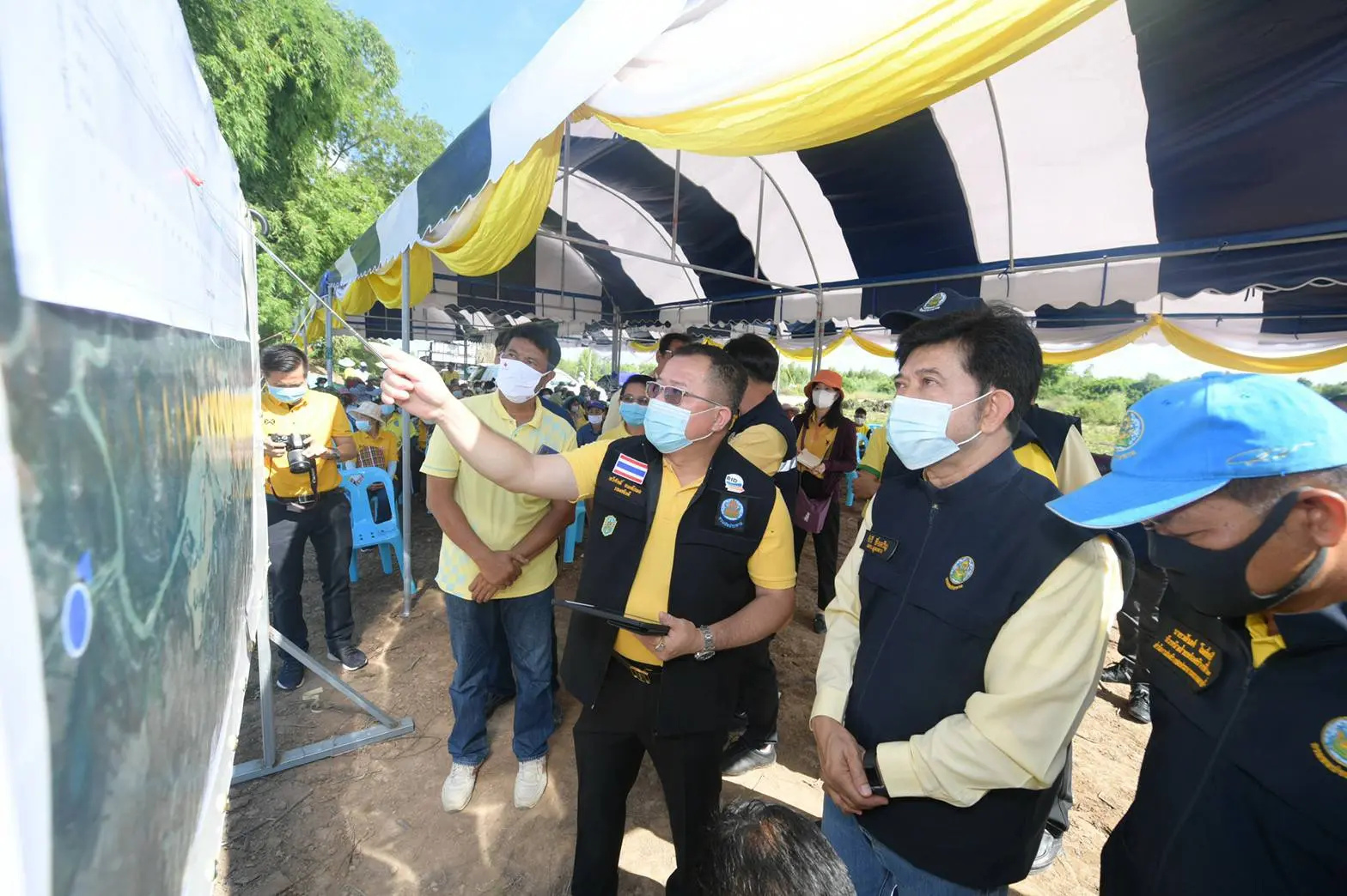 โดยในช่วงบ่าย รองอธิบดีกรมชลประทานและคณะลงพื้นที่ติดตามการดำเนินงาน ณ อ่างเก็บน้ำห้วยสวาย ต.สองชั้น อ.กระสัง จ.บุรีรัมย์ ซึ่งในช่วงที่ผ่านมาพื้นที่เมืองบุรีรัมย์ประสบปัญหาการขาดน้ำอุปโภค บริโภค เนื่องจากเกิดภัยแล้งต่อเนื่อง ปริมาณน้ำในอ่างเก็บน้ำห้วยจระเข้มากและอ่างเก็บน้ำห้วยตลาดซึ่งเป็นแหล่งน้ำดิบที่ใช้ผลิตน้ำประปามีปริมาณไม่เพียงพอ การประปาส่วนภูมิภาคสาขาบุรีรัมย์จึงได้ร่วมกับโครงการชลประทานจังหวัดบุรีรัมย์เพื่อแก้ไขปัญหาดังกล่าวโดยการวางท่อส่งน้ำดิบจากอ่างเก็บน้ำห้วยสวาย ต.สองชั้น อ.กระสัง เพื่อผลิตน้ำประปาชั่วคราว นอกจากนี้โครงการชลประทานบุรีรัมย์ได้ดำเนินการก่อสร้างเส้นทางผันน้ำจากลำปะเทียในช่วงฤดูน้ำหลากระยะทาง 38 กิโลเมตร ไปเติมอ่างเก็บน้ำสนามบิน อ.ประโคนชัย อ่างเก็บน้ำห้วยจระเข้มาก อ.เมืองบุรีรัมย์ แก้มลิงตามเส้นทางน้ำผ่านสำหรับผลิตน้ำประปาหมู่บ้าน ตลอดทั้งช่วยเหลือเกษตรกรในพื้นที่เพาะปลูกได้มากกว่า 5,000 ไร่ เมื่อถึงฤดูน้ำหลากจะสามารถผันน้ำจากจาก ลำมาศ ลำปะเทีย และอ่างฯห้วยสวาย ไปกักเก็บที่อ่างฯจระเข้มาก และอ่างฯห้วยตลาด ตลอดทั้งช่วยเหลือพื้นที่เพาะปลูก ประปาหมู่บ้านในเส้นทางผันน้ำได้อีกด้วย