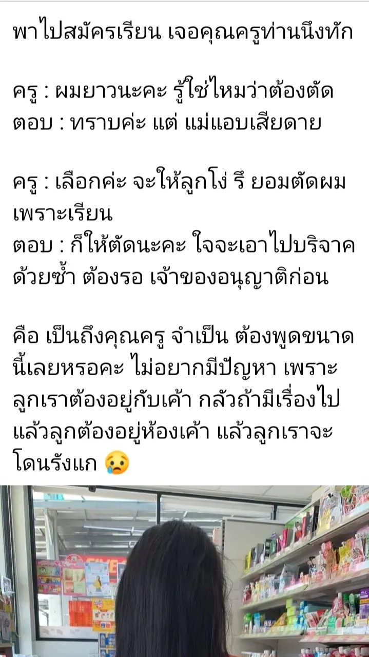 ครู : เลือกค่ะ จะให้ลูกโง่ รึ ยอมตัดผม เพราะเรียน