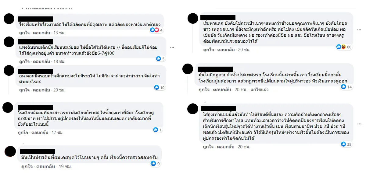 เรื่องนี้ต่างได้รับความสนใจจากชาวเน็ตที่พบเห็น ตามเข้ามาแสดงความคิดเห็นต่างๆ ที่กับประเด็นนี้บ้างก็บอกว่าราคาแพงเกินไปกับถุงเท้าแค่ 1 คู่ ราคาข้างนอกถูกว่านี้ บ้างก็บอกว่า นี้เป็นอีกช่องทางหนึ่งในการหารายได้เข้าโรงเรียนหรือเปล่า โดยโพสต์ดังกล่าวได้รับความสนใจจากชาวเน็ต จนมีคอมเมนต์ว่า 720 คอมเมนต์ และ กดถูกใจโพสต์อีกกว่า 4200 คน