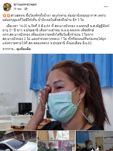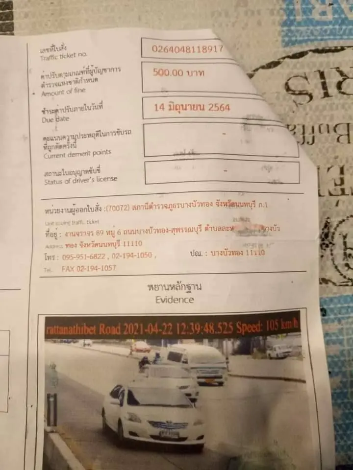 สาวสุดทน ขึ้นโรงพักทั้งน้ำตา รถเก๋งหาย ต้องผ่อนอากาศ เพราะแม้แต่กุญแจก็ไม่มีให้เห็น ซ้ำยังเจอใบสั่งส่งถึงบ้าน อีก 3 ใบ เมื่อเวลา 14.00 น.วันที่ 8 มิ.ย.64 ที่ สภ.บางบัวทอง จ.นนทบุรี น.ส.ณัฐฐินันท์ อายุ 31 ปี ชาว จ.ปทุมธานี เดินทางเข้าพบ พ.ต.อ.พรเทพ เพ็ชรรักษ์ ผกก.สภ.บางบัวทอง เพื่อแจ้งความหลังได้รับใบสั่งจำนวน 3 ใบจาก สภ.บางบัวทอง 2 ใบ และตำรวจทางหลวง 1 ใบ ทั้งที่รถยนต์คันก่อเหตุได้ถูกแจ้งความหายไว้ที่ สภ.คลองหลวง จ.ปทุมธานี ตั้งแต่เดือน มิ.ย.62 จากการตรวจสอบใบสั่งทั้ง 3 ใบถูกแจ้งข้อหา ขับรถโดยใช้ความเร็วเกินอัตราที่กฏหมายกำหนด ทำให้กล้องตรวจจับความเร็วสามารถบันทึกภาพรถเก๋ง โตโยต้า รุ่นโซลูน่า วีออส สีขาว ทะเบียน ฆง 4300 กรุงเทพมหานคร เป็นหลักฐาน