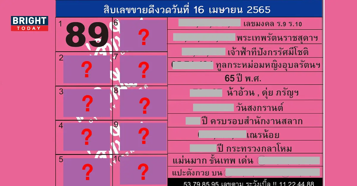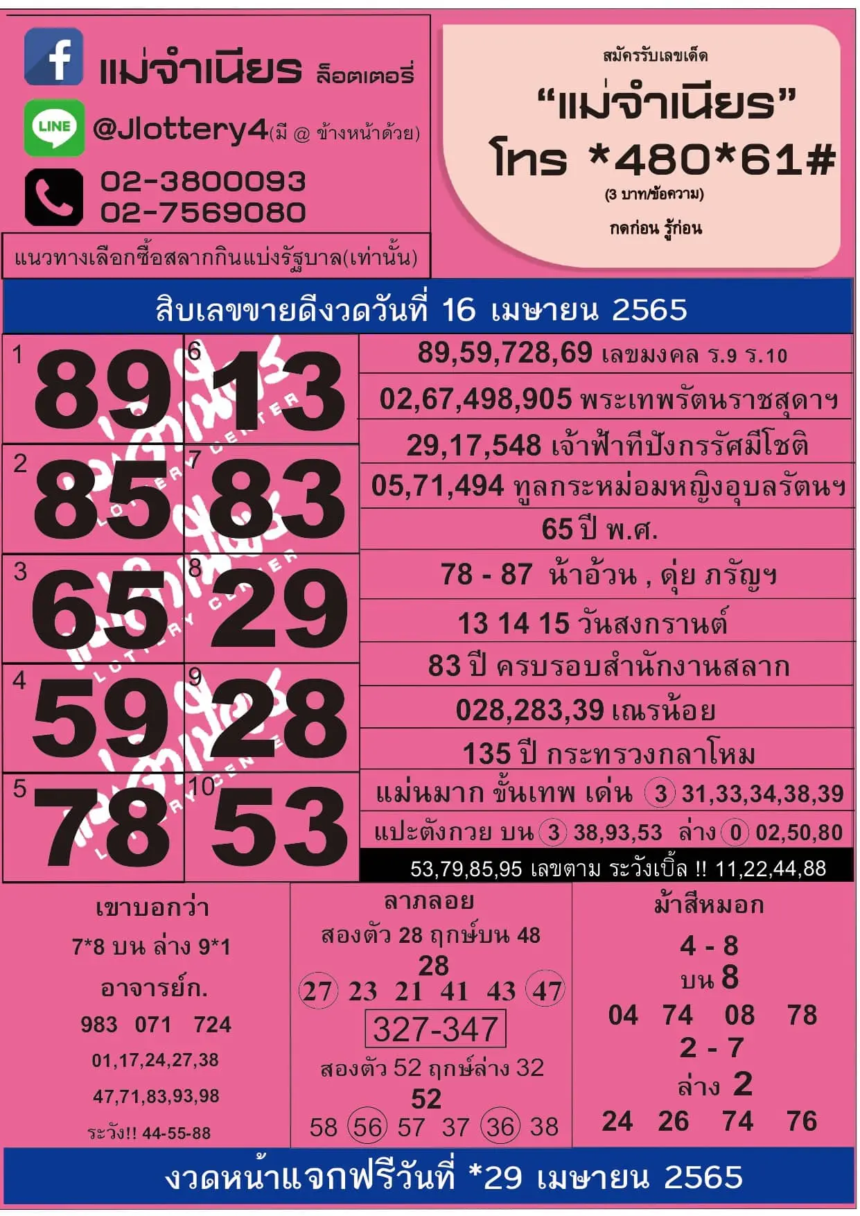 แม่จำเนียรล็อตเตอรี่ จัดให้! เปิด 10 เลขเด็ดขายดี งวดวันที่ 16 เมษยน 2565 ที่1ต้องยกให้ 2ตัวตรง ” 89 ” พร้อมรวบรวมเลขน่าสนใจ จัดเต็ม จุกๆ